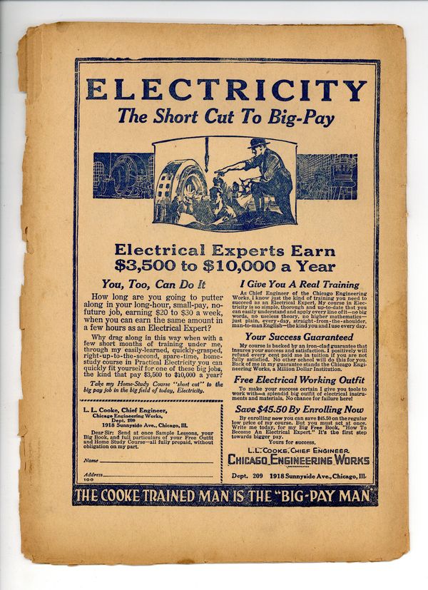 Published Oct 1921 by Frank Tousey.$54.00- Spine split 25%. Staple rust: Slight.