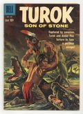 Published Dec 1960 by Dell/Gold Key.$22.00Painted cover. Turok in "The Outsiders" in which Turok and Andar battle cavemen who are determined to gain the knowledge of their weapons and "The Stone Builders" in which Turok and Andar are forced to work for a tribe that is building a huge stone shrine. Issue also has backup feature "Young Earth - The Triumph of the Egg," a one-page text feature "The Wise One," and one-page strips. No art/story credits given. 36 pages, full color. Cover price $0.10.
