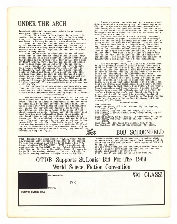 Published Nov 1967 by Gateway Comic Art Fan Club.$9.00Volume 2 No. 16. Whole Number #63. Cover by Earl Blair and Eddie Eddings. 16 Pages, B&W, 8.25" x 11".