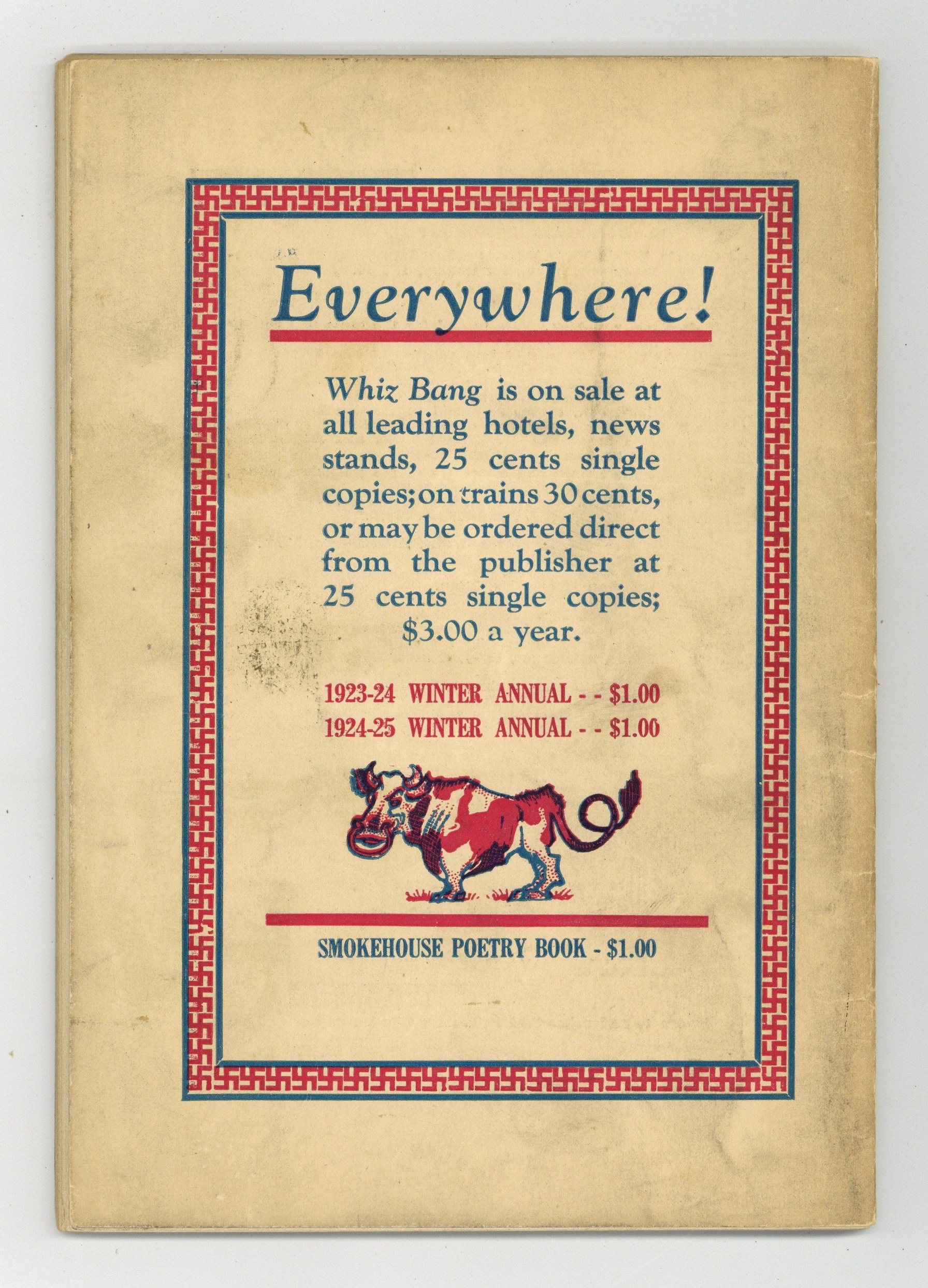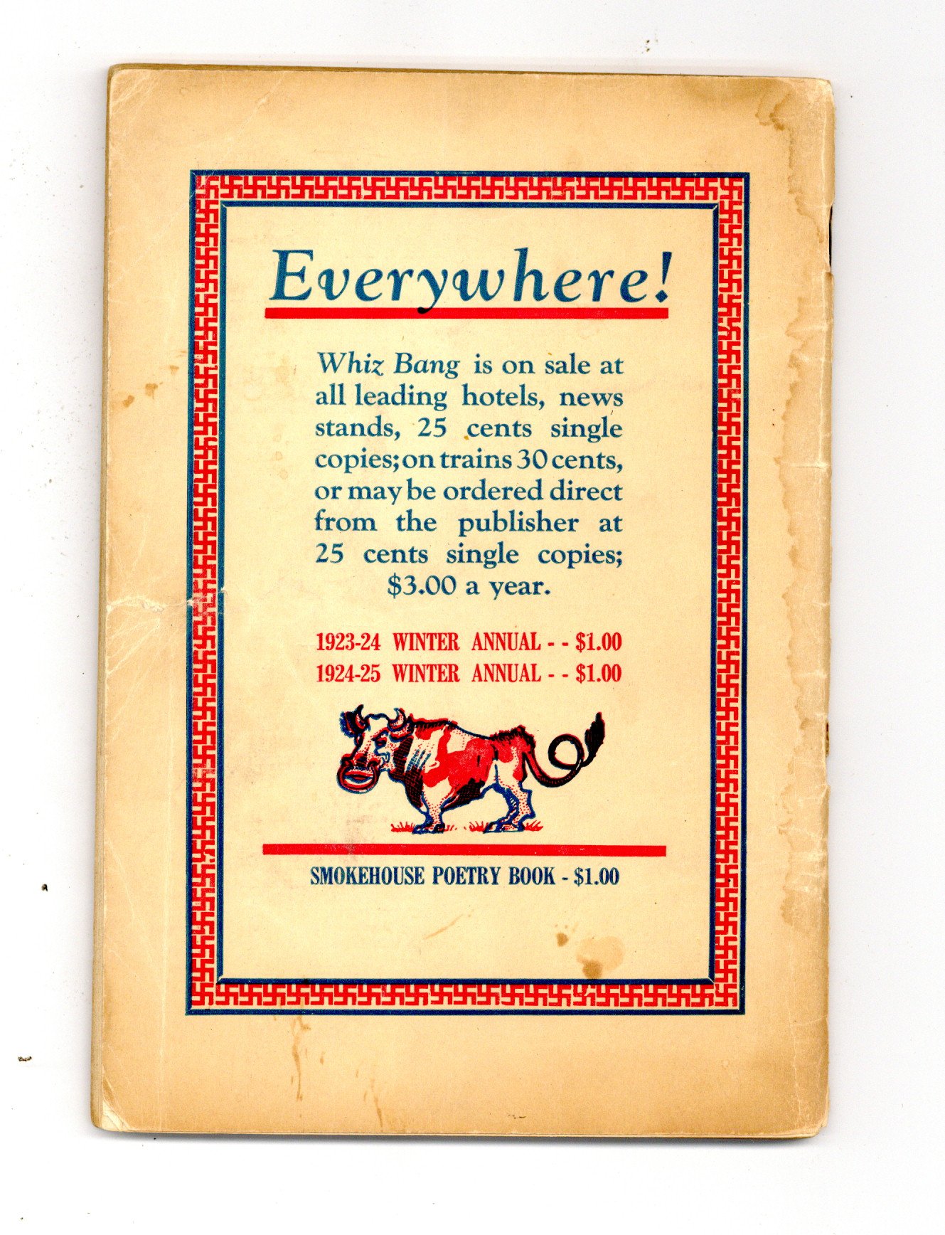 Captain Billy's Whiz Bang was one of the most popular and notorious humor magazines of the 1920s. Contains jokes and humorous stories. 5 1/4" x 7.5", 64 pages, B&W. Cover price $0.25.
