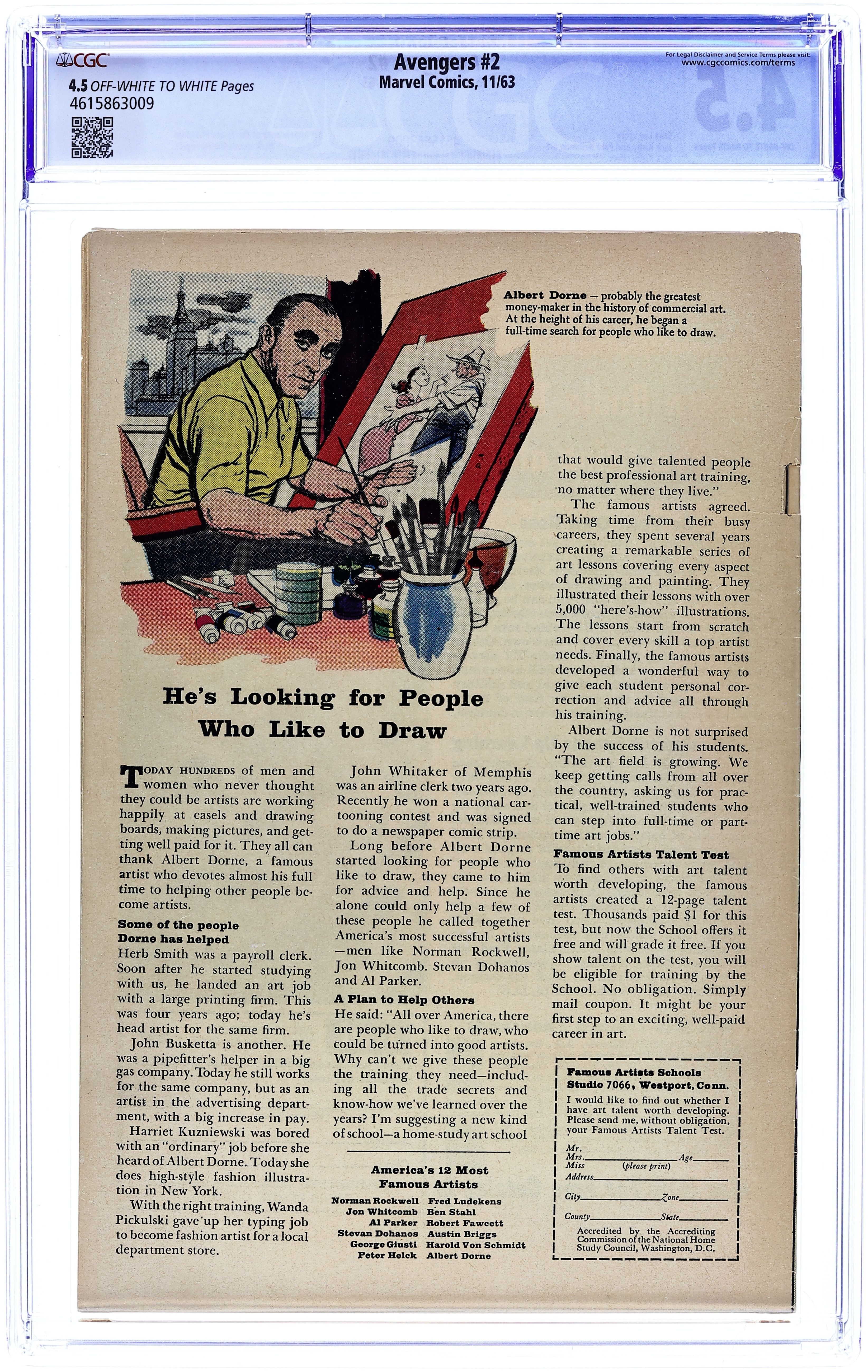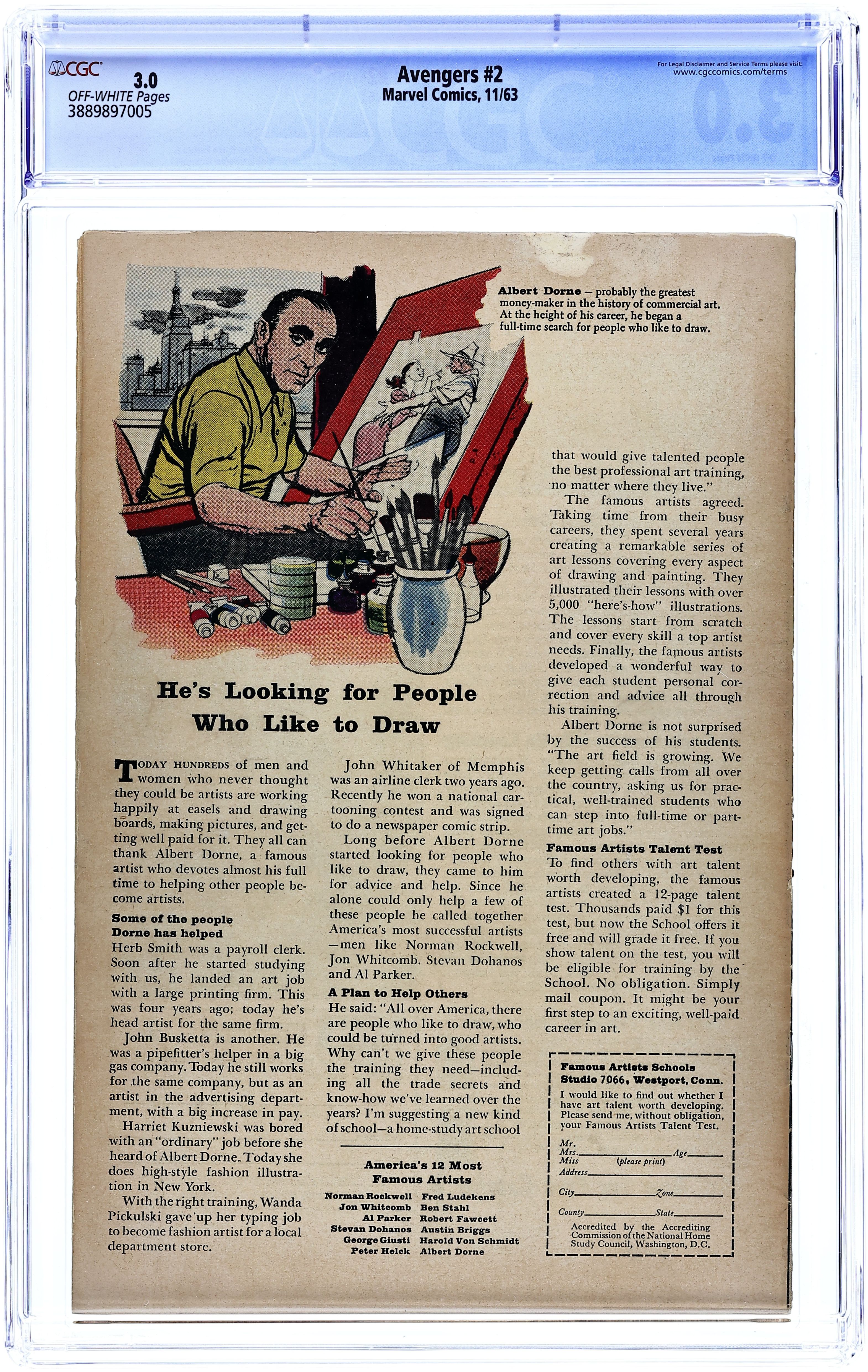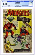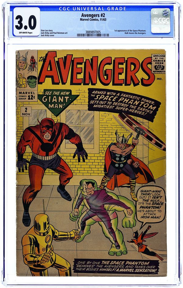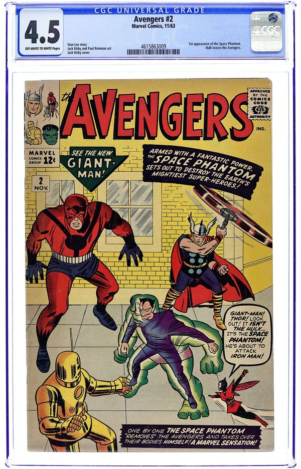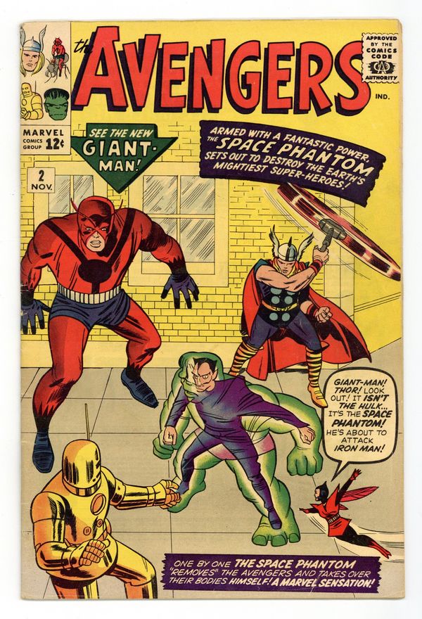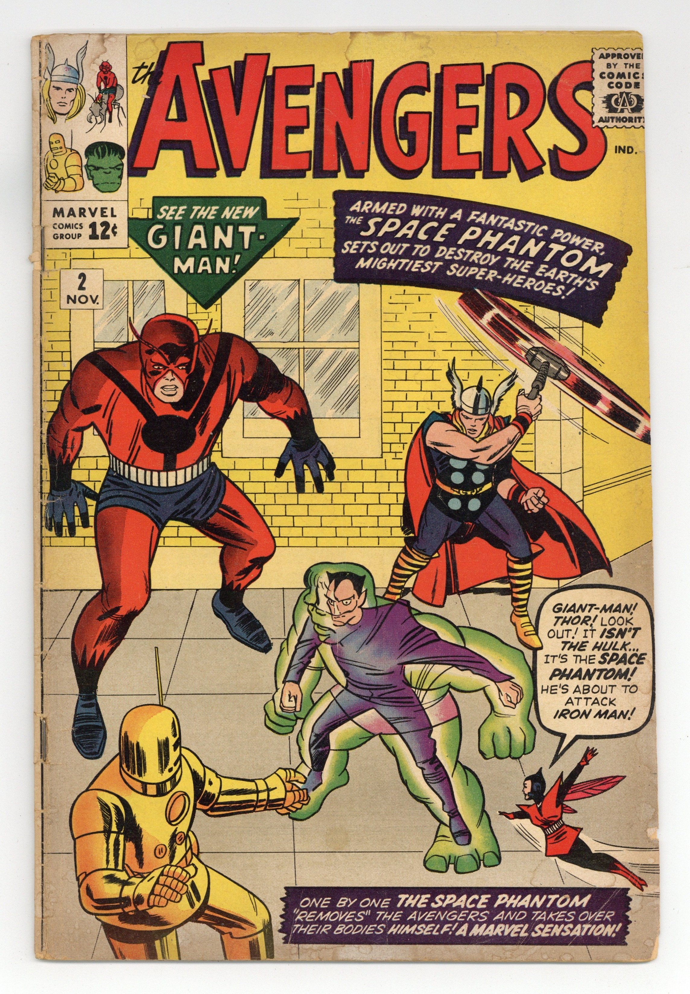 Cover pencils by Jack Kirby, inks by Sol Brodsky. The Avengers Battle the Space Phantom, script by Stan Lee, pencils by Jack Kirby, inks by Paul Reinman; The Space Phantom comes to Earth to defeat the Avengers; If he can, then nothing can stop his race from invading Earth. Roster includes Thor, Iron Man, Wasp, Giant Man, and the Hulk, who leaves the team at the end of the issue. Rick Jones appearance. First appearance of the Avengers Mansion. 36 pgs. $0.12. Cover price $0.12.