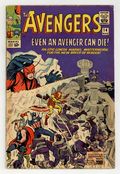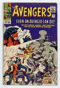 Tags: Marvel Legacy Numbering: Avengers (part 14), Avengers$38.00Cover pencils by Jack Kirby, inks by Chic Stone. Even Avengers Can Die!, script by Stan Lee (plot), Larry Ivie [as Paul Laiken] (script), and Larry Lieber (script), pencils by Jack Kirby (layouts) and Don Heck (pencils), inks by Chic Stone; In order to save the Wasp's life, the Avengers seek out the help of Dr. Svenson, only to find he's been replaced by an alien from the planet Kallu. Avengers Roll Call: Captain America, Thor, Iron Man, Giant Man, Wasp, and Rick Jones. First and only appearance of the villainous Ogor and the Kallusians. Guest appearance by the Watcher. Reprinted in Marvel Triple Action #8. 36 pgs. $0.12. Cover price $0.12.