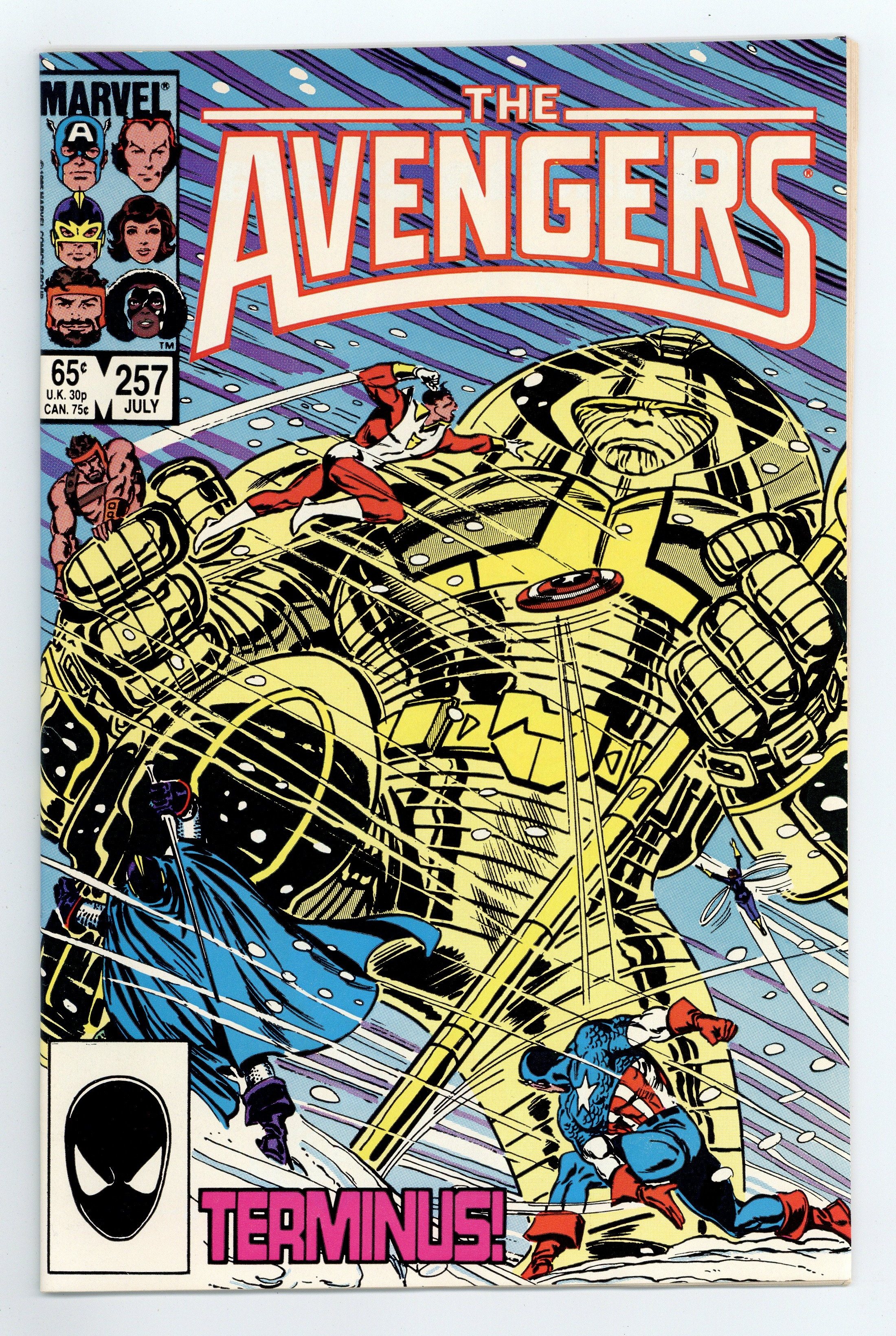 Tags: Legacy of Thanos (part 3), Marvel Legacy Numbering: Avengers (part 257), Terminus Trilogy (part 4), Avengers$25.00Direct Edition. "Holocaust in a Hidden Land!" Part 2 of 2. Guest-starring Ka-Zar and Shanna. Script by Roger Stern. Art by John Buscema (breakdowns) and Tom Palmer (finishes). Cover by John Buscema and Tom Palmer. Terminus is on a rampage through the Savage Land! And only Earth's Mightiest Heroes stand between the powerful alien and the utter destruction of the bottom of the world! Will the combined might of the Black Knight, shield-slinger, Starfox, Wasp, and Prince of Power be enough to prevent the annihilation of the hidden paradise? Or will Antarctica, centuries later, finally reclaim the Savage Land? A cold and bitter ending for Ka-Zar and the Avengers! Meanwhile light years away in outer space, Captain Marvel meets a new super-villain that will battle the Avengers for years to come! First appearance of Nebula. (Notes: The Savage Land first appeared in Uncanny X-Men (1st series) 10. The High Evolutionary attempts to restore the Savage Land in Uncanny X-Men Annual 12. This issue includes a full-page ad for the Secret Wars II Limited Series.) 36 pages Cover price $0.65.