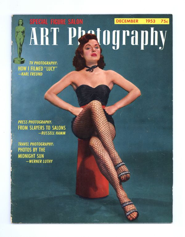 Volume 6, Issue 6 - December, 1953. Art Photography Magazine was a men's interest publication produced from July, 1949 to December, 1958 that focused heavily on photographing the nude female form, as well as a fair amount of "cheesecake" pin-up style photography. Included are articles on how to take better photographs, product reviews of different photography equipment, and diving deeper into what makes photography a legitimate form of art. 8.5" x 10.5", 50 pages, B&W. -MATURE READERS- Cover price $0.50.