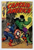 Tags: Marvel Legacy Numbering: Captain America (part 110), Captain America$130.00Cover by Jim Steranko. Rick Jones becomes Cap's partner in "No Longer Alone!", script by Jim Steranko (plot) and Stan Lee (dialogue), pencils by Jim Steranko, inks by Joe Sinnott; Cap runs across the Hulk on a rampage in NYC; The Hulk escapes and Cap vows Rick must never put himself in danger until the monster can be tamed. Back at Avengers Mansion Rick finds Bucky Barnes' old uniform, and rejects Cap's protests against wearing it; After putting him off for years, Cap finally accepts Rick officially as his new partner; Almost immediately they uncover a plot by HYDRA to contaminate the city's water supply. After a series of battles the HYDRA goons are driven off, and Cap tells Rick he survived his "baptism of fire" like a man. 36 pgs., full color. NOTE: 1st appearance of Madame Hydra Cover price $0.12.