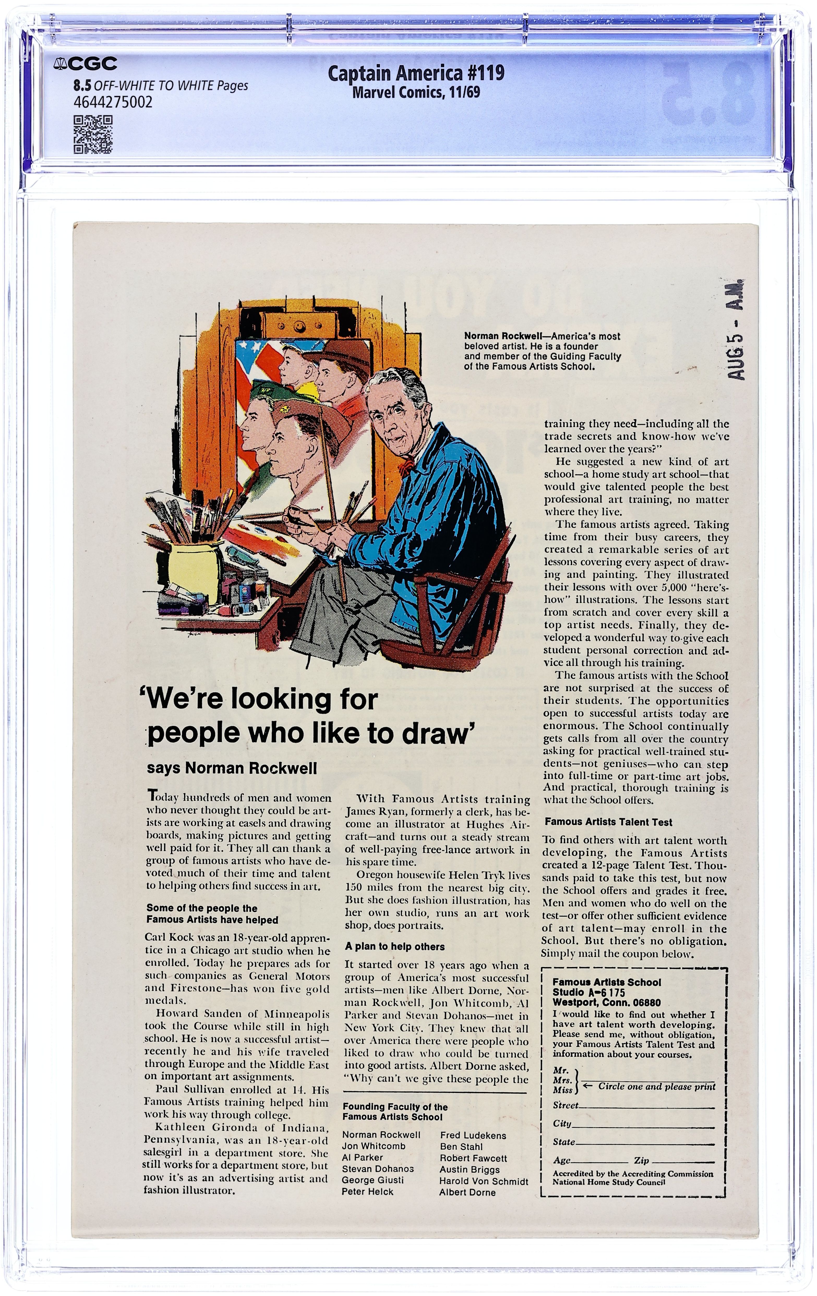 Tags: Marvel Legacy Numbering: Captain America (part 119), Captain AmericaCaptain America (1968 1st Series) 119 CGC 8.5