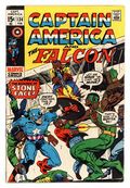 Tags: Marvel Legacy Numbering: Captain America (part 134), Captain America$32.00Cover pencils by Marie Severin and John Romita (alterations), inks by Herb Trimpe and John Romita (alterations). "They Call Him - Stone-Face!", script by Stan Lee, pencils by Gene Colan, inks by Dick Ayers; Captain America and the Falcon defeat two punks who are running a protection racket on a Harlem shopkeeper; Their boss is Stone-Face, a gang lord nicknamed for his partially paralyzed face; Falcons nephew Jody Casper works as a numbers runner for the crime lord; Jody stops by Sam Wilsons office and rejects his uncles advice to avoid the racket; Jody gets arrested, and Cap joins Sam and Jodys mom in recommending leniency; Jody is given a suspended sentence and believes that Captain America works for Stone-Face; Cap and the Falcon battle Stone-Face. 36 pgs., full color. $0.15. Cover price $0.15.