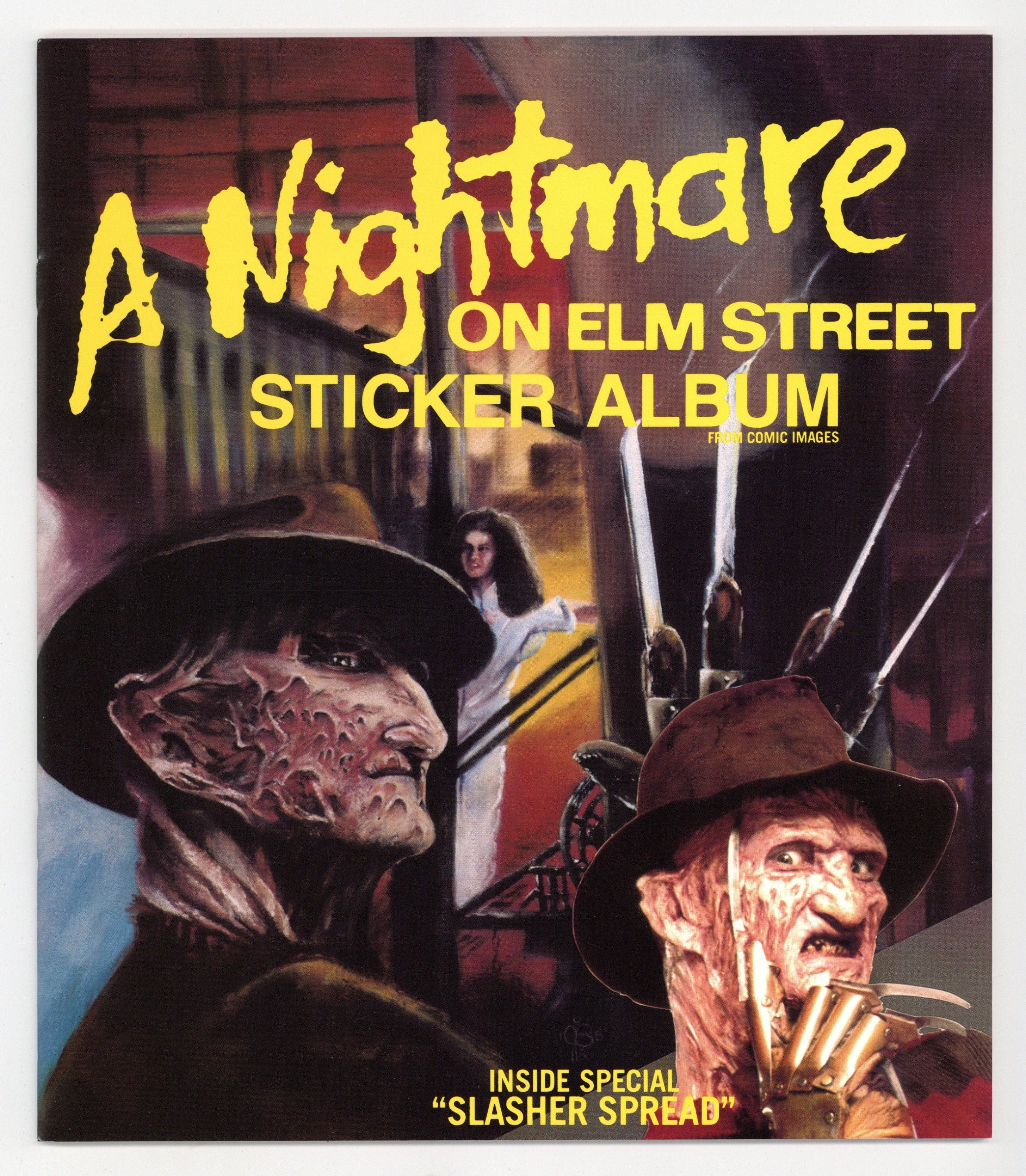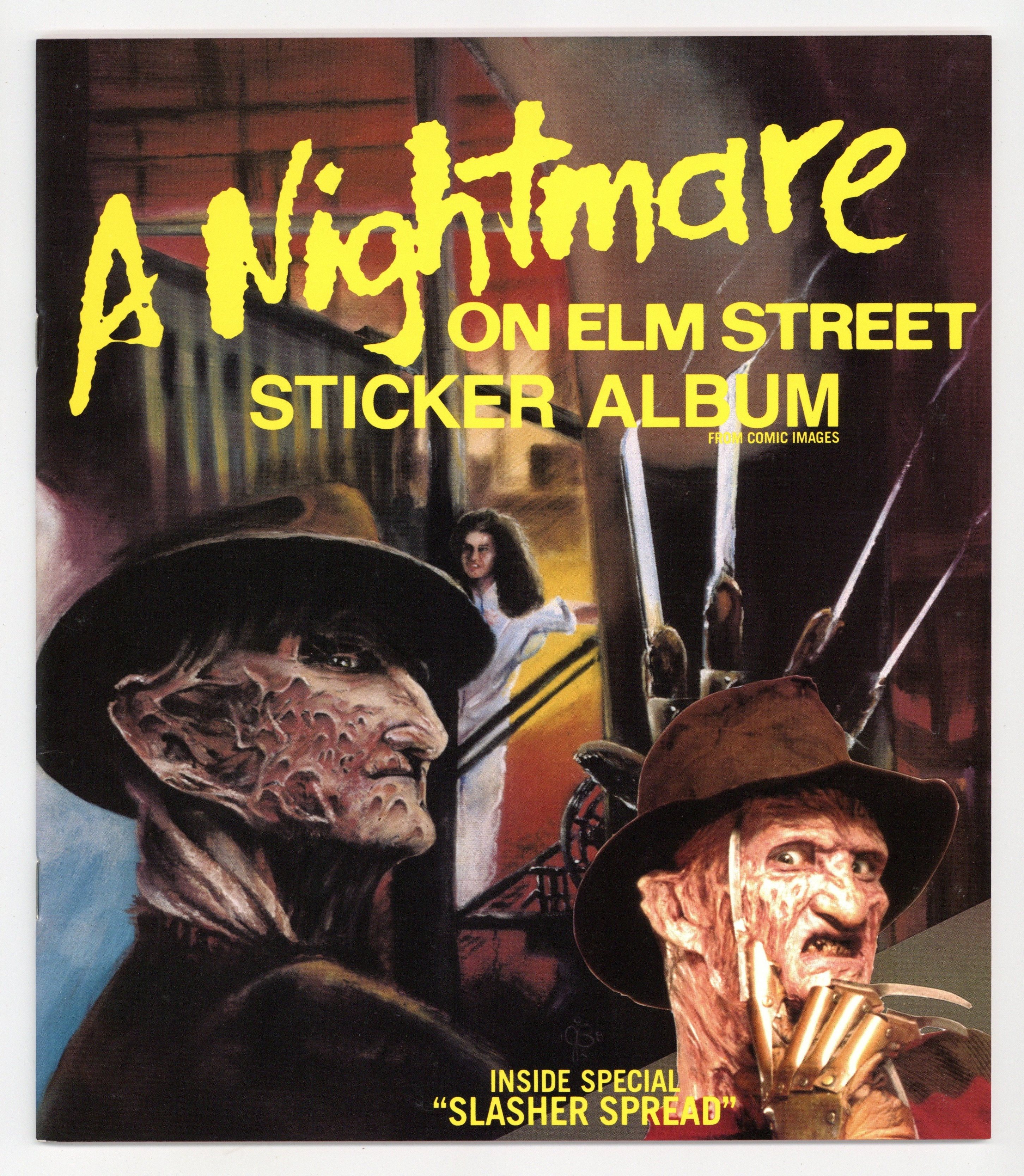 Featuring classics scenes from A Nightmare on Elm Street, Freddy's Revenge, and Dream Warriors! This classic collectible sticker book includes a special "Slasher Spread!" Try not to fall asleep or Freddy Kruger, the man of your dreams, will get you!