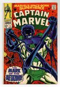 $8.00Cover pencils by Don Heck. The Mark of the Metazoid," script by Arnold Drake, pencils by Don Heck, inks by John Tartaglione; Aboard the Kree vessel over the Earth, Mar-Vell is put on trial by Yon-Rogg for being "Un-Kree" by allowing the Sub-Mariner to win a battle and prevent the people of Earth from being infected with bacteria (as seen last issue); However, after much consideration, Ronan decides to judge Mar-Vell based on his future actions in being able to carry out his mission; He orders Mar-Vell to kill Mr. Logan the one man who may hint at Mar-Vell's identity; Mar-Vell gets out of killing Logan by suggesting that killing Logan would attract unwanted attention and erasing his memory would be better; Ronan agrees and allows Mar-Vell to see things his own way; Back on Earth, Communist agents are plotting to capture Walter Lawson by sending their latest super-powered agent the Metazoid--a being mutated to have the metabolism of 50 men--to capture Lawson. Meanwhile, Mar-Vell returns to Earth and assumes his identity as Lawson. Letter to the editor from comics historian Peter Sanderson. 36 pgs., full color. Cover price $0.12.