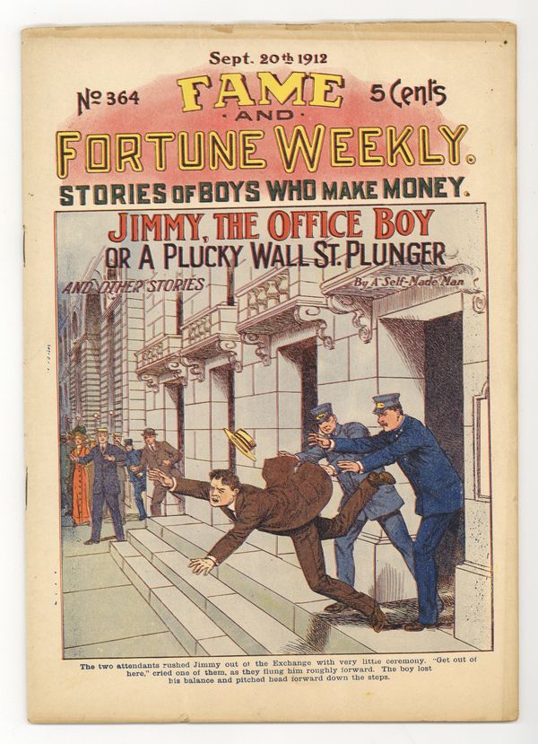 September 20, 1912. Jimmy, the Office Boy; or, A Plucky Wall St. Plunger. 11" x 8", 36 pages. Cover price $0.05.