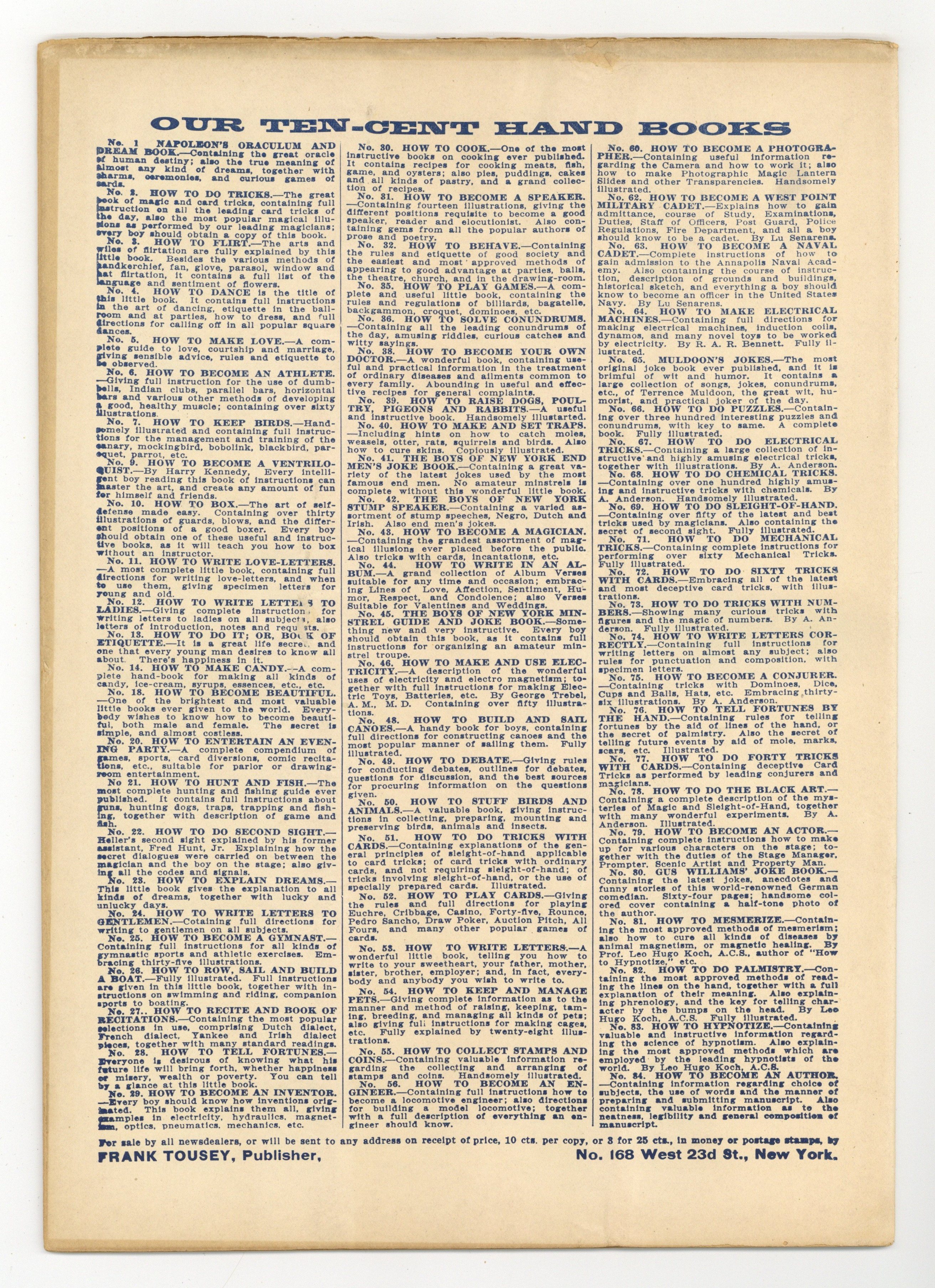 Published Sep 1912 by Frank Tousey.$175.00- This is a consignment item. A 3% buyer's premium ($5.25) will be charged at checkout. It has been graded by MyComicShop's experienced graders.