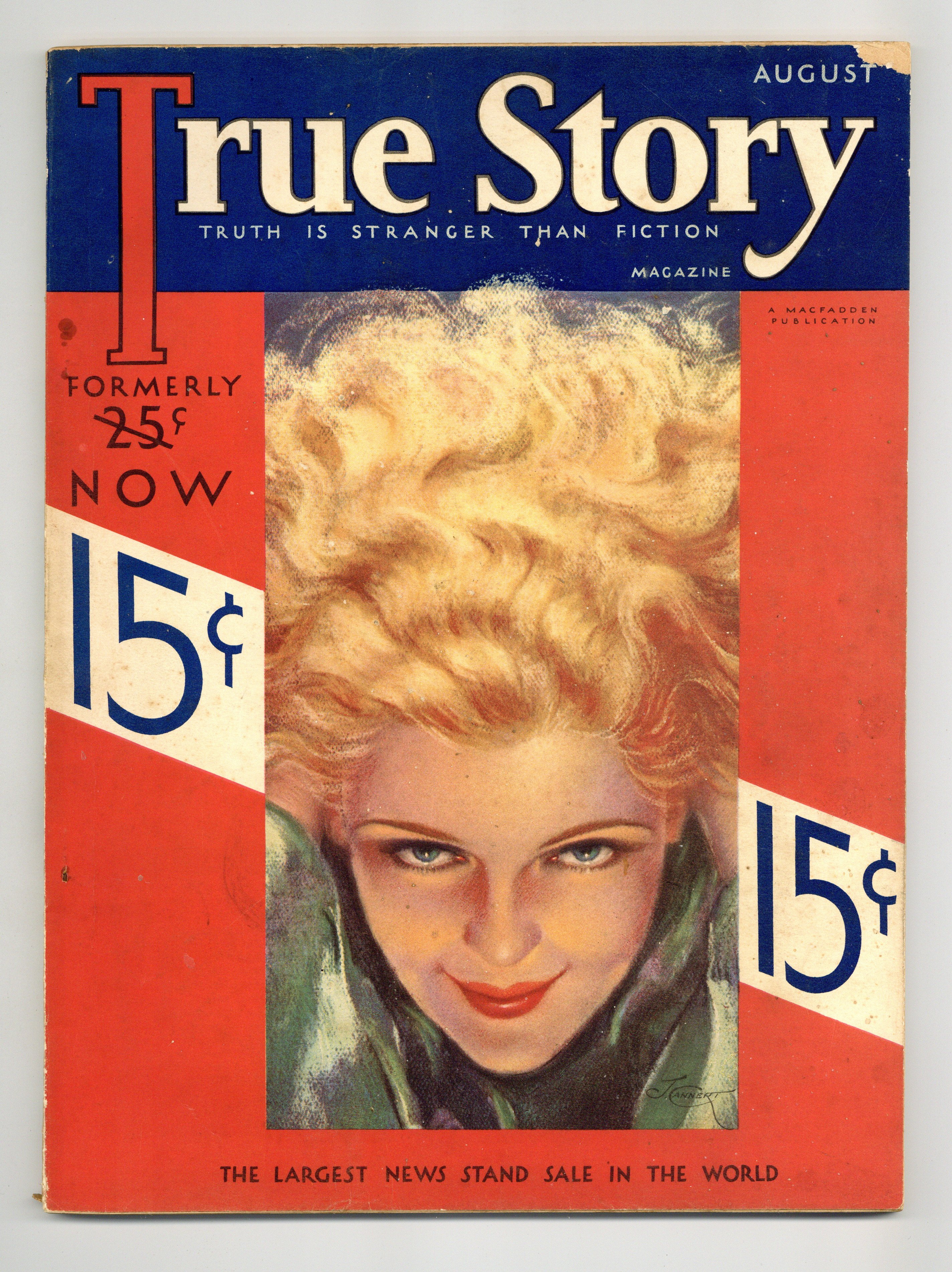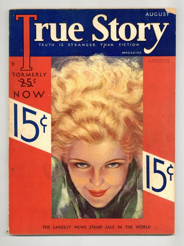 Vol. 27 #1 - August 1932. Cover portrait by Jules Cannert. Human interest publication that has a little something for everyone: from romance to true crime, to home remedies and recipes, True Story Magazine has you covered. 8.5" x 11.5", 130 pages, B&W. Cover price $0.15.