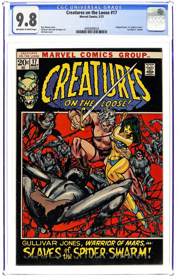 Written by Roy Thomas. Art by Gil Kane and Sam Grainger. Cover by Gil Kane. New story: "River of the Dead!"; Gullivar Jones, Warrior of Mars story adapted from the novel Lt. Gullivar Jones by Edwin A. Arnold. Art by Jack Kirby and Steve Ditko. Reprint: Gargantus!; A deep sea explorer encounters a giant and intelligent reptile that follows him back to the surface. Art by Don Heck. Reprint: The Things from Dimension X!; A scientist successfully creates a link to the dimension Electra only to find the inhabitants bent on conquest. 36 pages, full color. $0.20. Cover price $0.20.