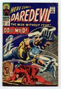 Cover pencils by Gene Colan, inks by Frank Giacoia. Daredevil faces the Gladiator, the Masked Marauder, Tri-Man, the Dancer, the Mangler, the Brain, and the Maggia in DD Goes Wild, script by Stan Lee, pencils by Gene Colan, inks by Frank Giacoia; The Marauder transports DD and Gladiator back to his base in hopes of using Hornhead to help power his Tri-Man; When this plan fails, he transports them both to a movie set of the Roman Coliseum in Europe where all the Maggia heads are meeting; DD and Gladiator fight it out in the arena until a caged lion gets loose and DD ends up saving his foe's life; Gladiator refuses to fight after this and gets a job with the Maggia; DD walks away. 36 pgs. Cover price $0.12. Cover price $0.12.