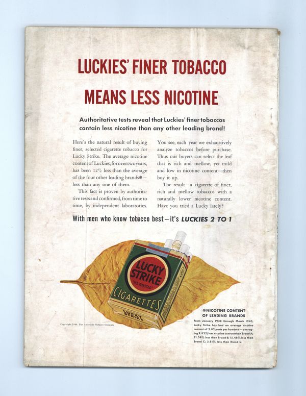 $11.00Movie magazine with news, reviews and gossip. Articles on John Barrymore, Joan Fontaine, Charles Boyer, Joel McCrea, Jackie Cooper, Jean Arthur, Marlene Dietrich, Full-page portraits include Claudette Colbert, Errol Flynn, Joan Crawford, Linda Darnell, Greer Garson. Interesting ads include Lil Abner for Cream of Wheat, Claudette Colbert for Lux soap. Movie ads include Pride and Prejudice, Tom Brown's School Days, Maryland, Ghost Breakers. 8 1/2-in. x 11 1/4-in., 90 pages, B&W. Cover price $0.10.