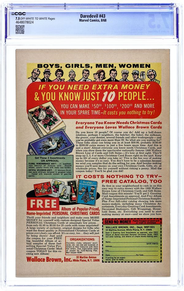 Tags: Marvel Legacy Numbering: Daredevil (part 43), Daredevil$34.00- Cover and first five wraps detached at one staple. Water spotting.