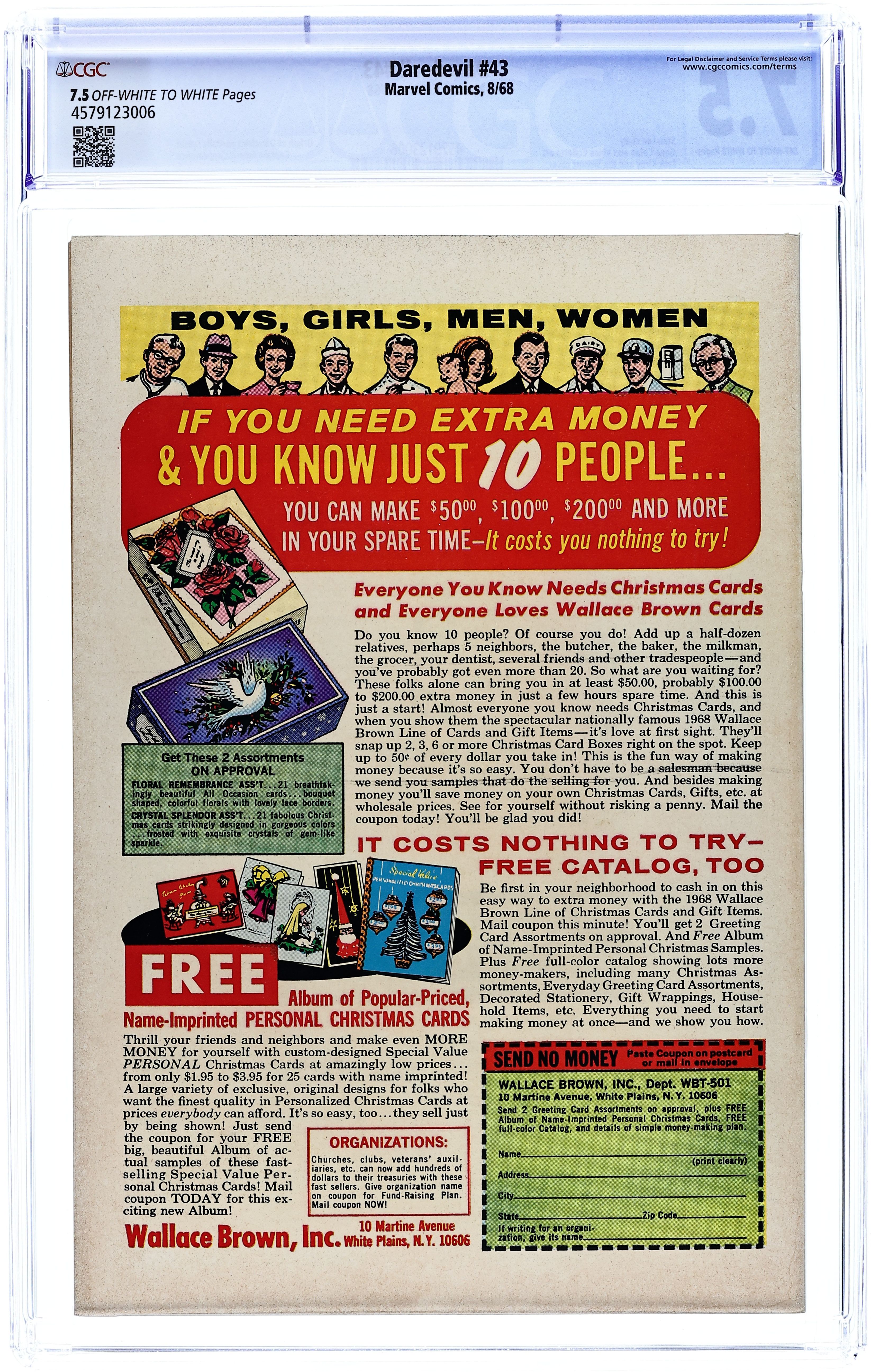 Tags: Marvel Legacy Numbering: Daredevil (part 43), Daredevil$77.00- This is a consignment item. A 3% buyer's premium ($2.31) will be charged at checkout. It has been graded by MyComicShop's experienced graders.