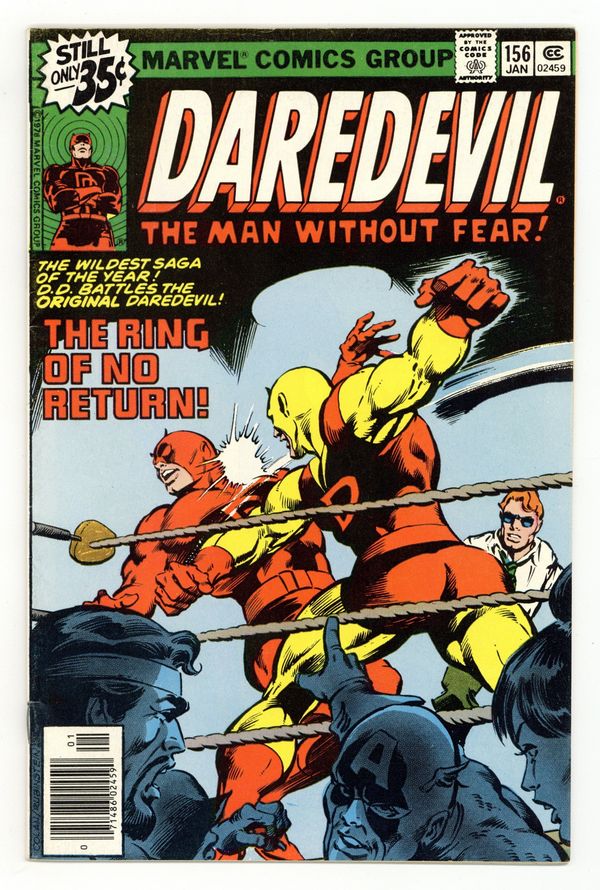 Cover pencils by Gene Colan, inks by Joe Rubinstein. The Avengers (Captain America, the Black Widow, the Beast) and Hercules guest star in Ring of Death!, script by Roger McKenzie, pencils by Gene Colan, inks by Klaus Janson; Matt slips into a coma and has to fight for his life against himself; Death-Stalker makes his move. Hostess Fruit Pie ad; Captain Marvel Meets the Dreadnought. 36 pgs. Cover price $0.35. Cover price $0.35.