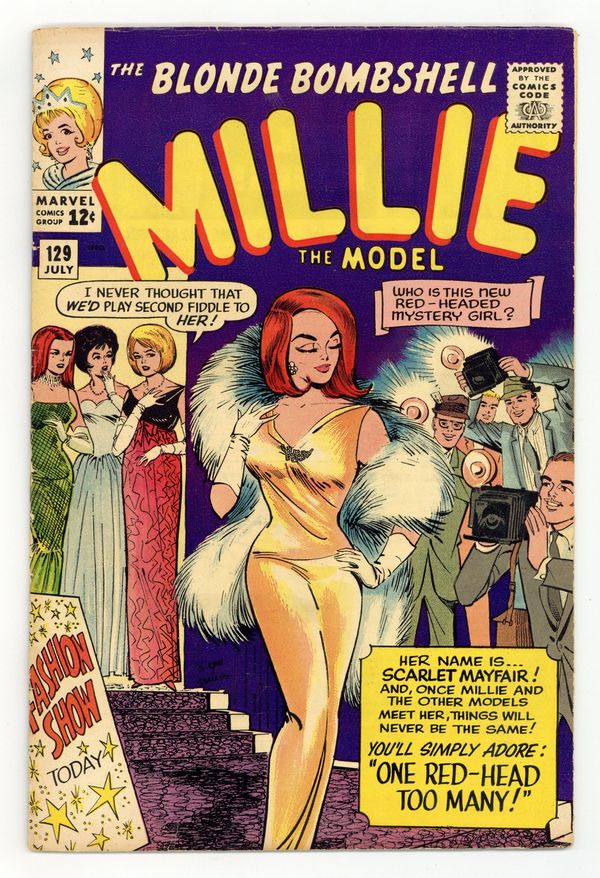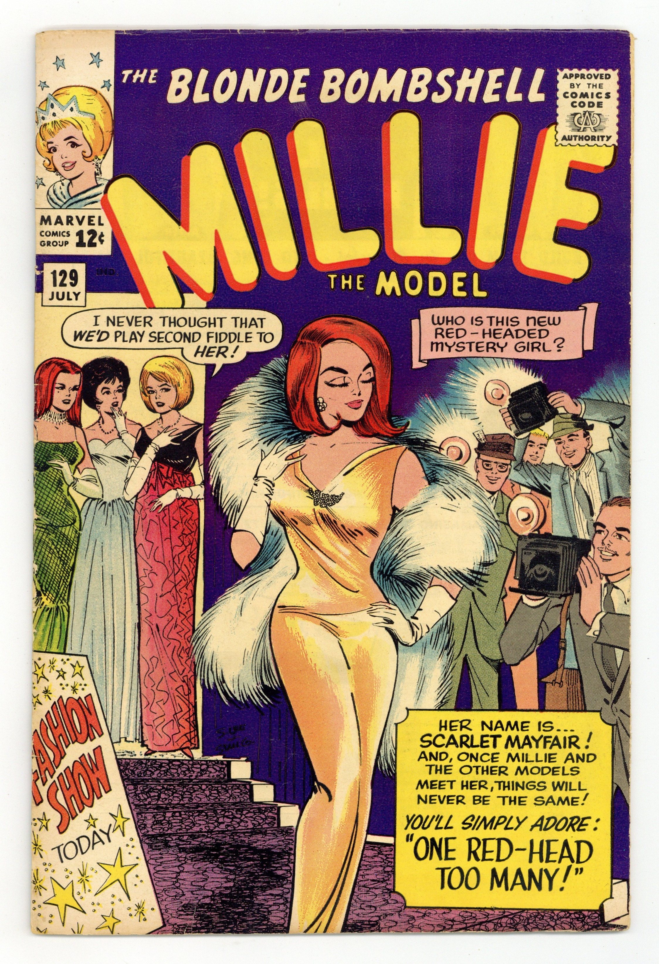 Cover art by Stan Goldberg. One Redhead Too Many! starring Millie the Model. Millie's Precious Party Gowns! fashion page. Millie's Pin-Up Page, Chili's Classy Cut-Out, and Toni's Sensational Sports-Wear paper dolls. Millie and Chili's Crowning Glory illustration. Stories by Stan Lee, art by Stan Goldberg. 36 pgs. $0.12. Cover price $0.12.