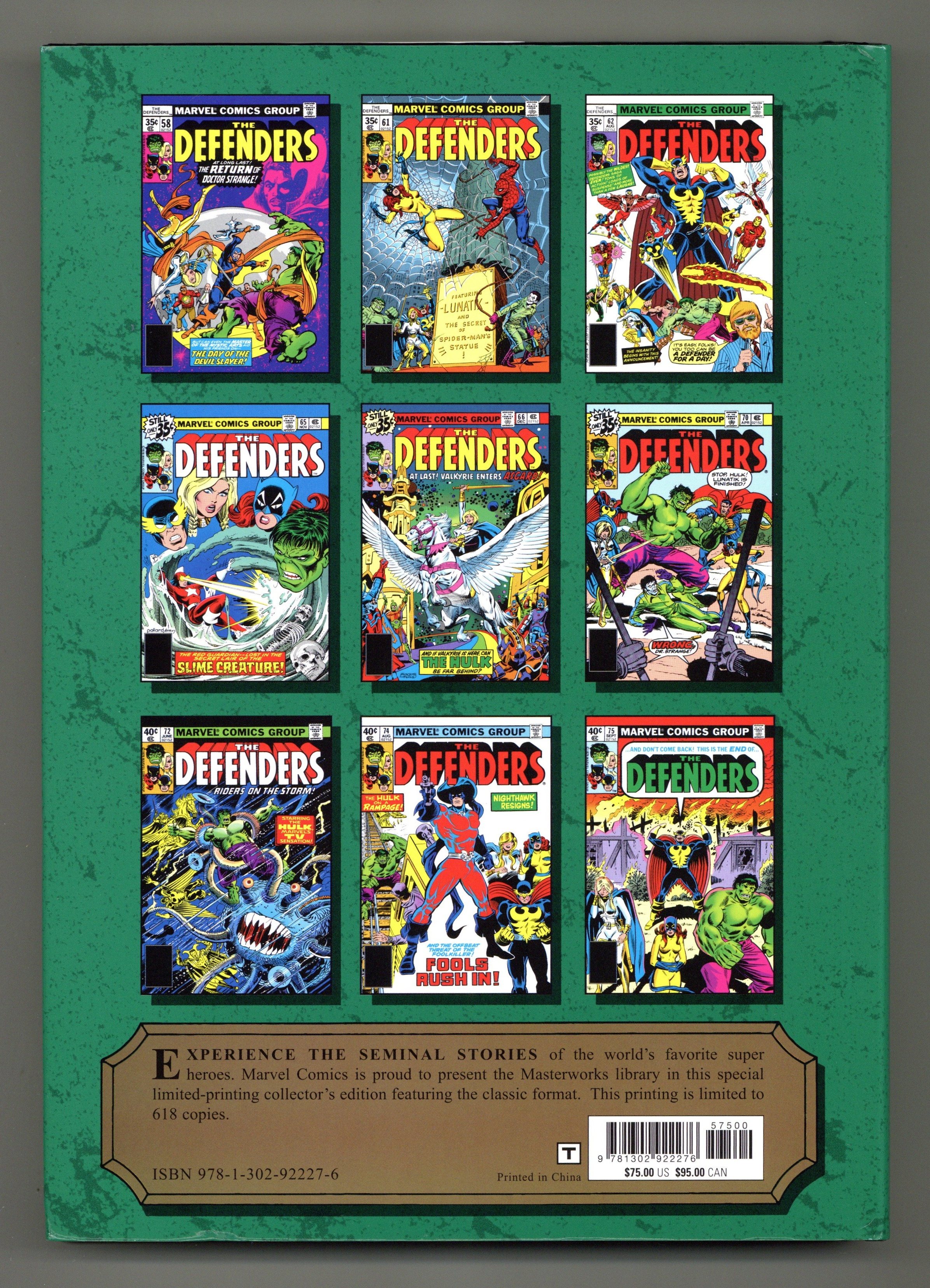 Volume 295 - 1st printing. "The Defenders: Book 7!" Collects The Defenders (1972-1986 1st Series) #58-75 and Marvel Treasury Edition (1974) #16. br>