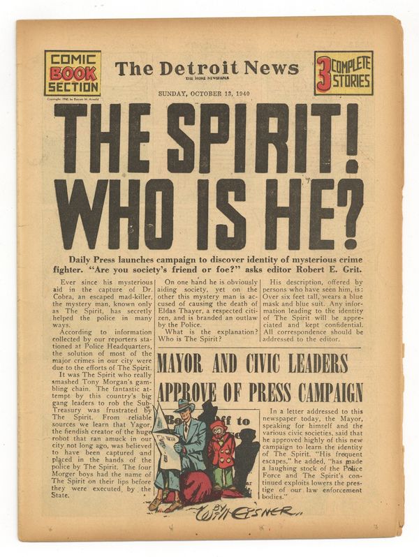 Spirit Weekly Newspaper Comic Insert. 7-1/2 x 10 inches, 16 pages, full color, all newsprint with no slick cover.