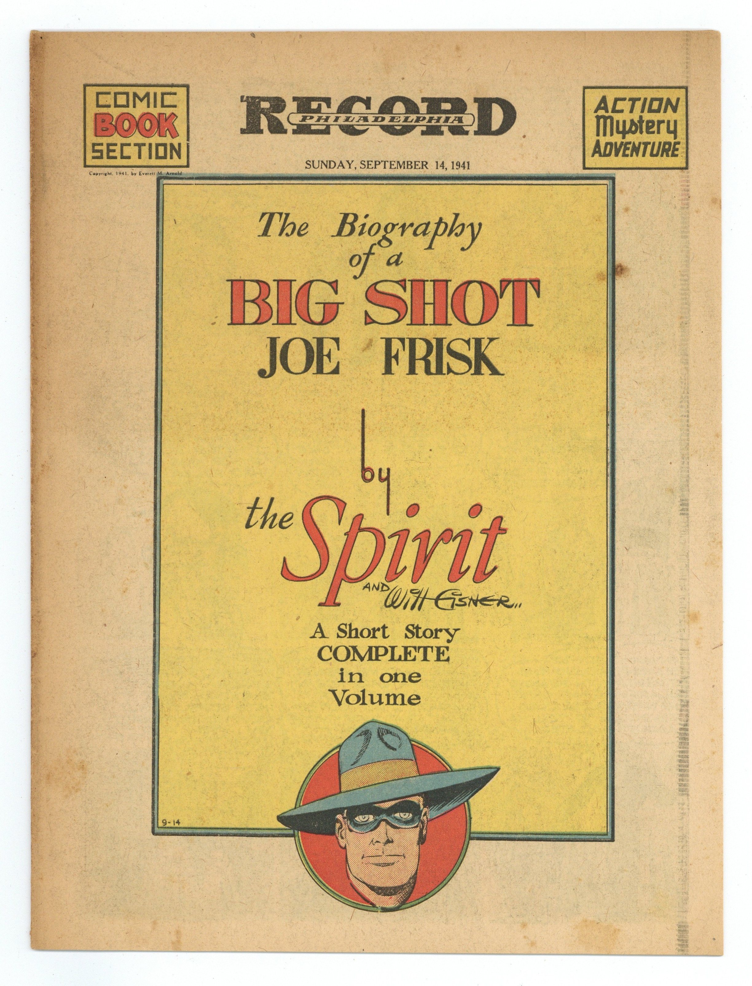 Spirit Weekly Newspaper Comic Insert. 7-1/2 x 10 inches, 16 pages, full color, all newsprint with no slick cover. Lady Luck by Nick Viscardi.