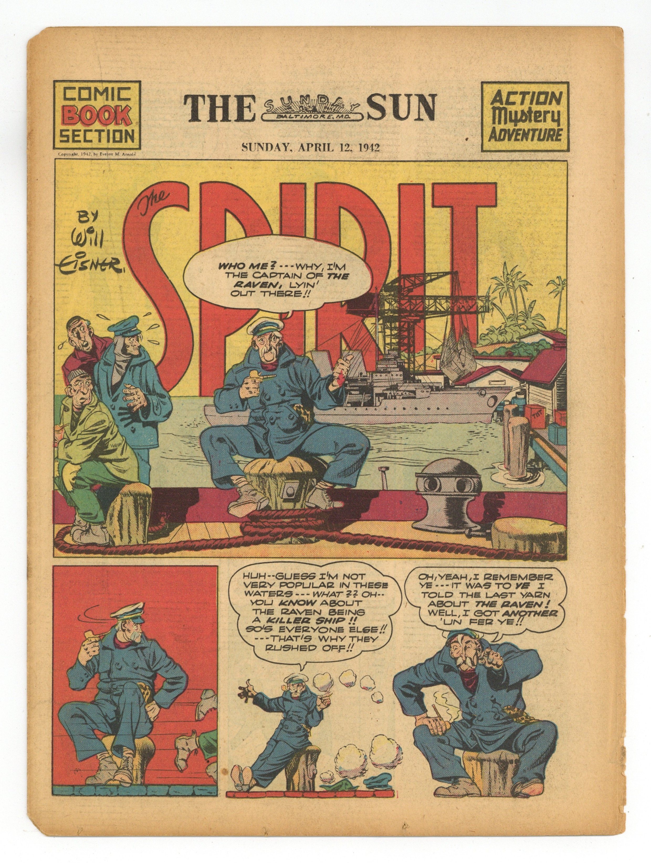 Published Apr 1942 by Promotional.$70.00Spirit Weekly Newspaper Comic Insert. 7-1/2 x 10 inches, 16 pages, full color, all newsprint with no slick cover.