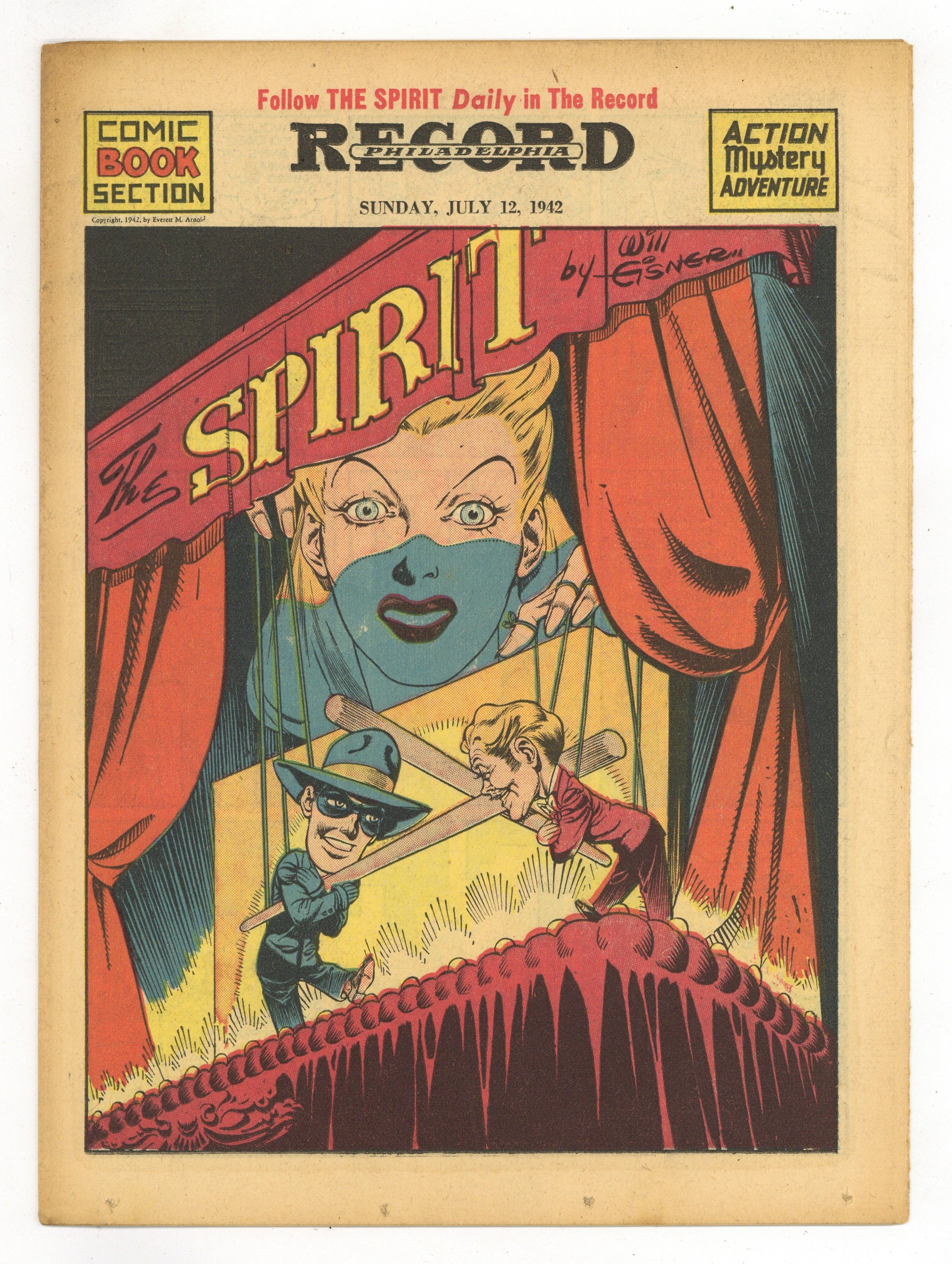 Published Jul 1942 by Promotional.$77.00Spirit Weekly Newspaper Comic Insert. 7-1/2 x 10 inches, 16 pages, full color, all newsprint with no slick cover. Eisner/Fine/Quality staff assist on Spirit.