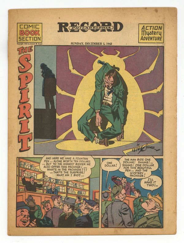 Spirit Weekly Newspaper Comic Insert. 7-1/2 x 10 inches, 16 pages, full color, all newsprint with no slick cover. Wellman/Woolfolk scripts, Fine pencils, Quality Staff inks.