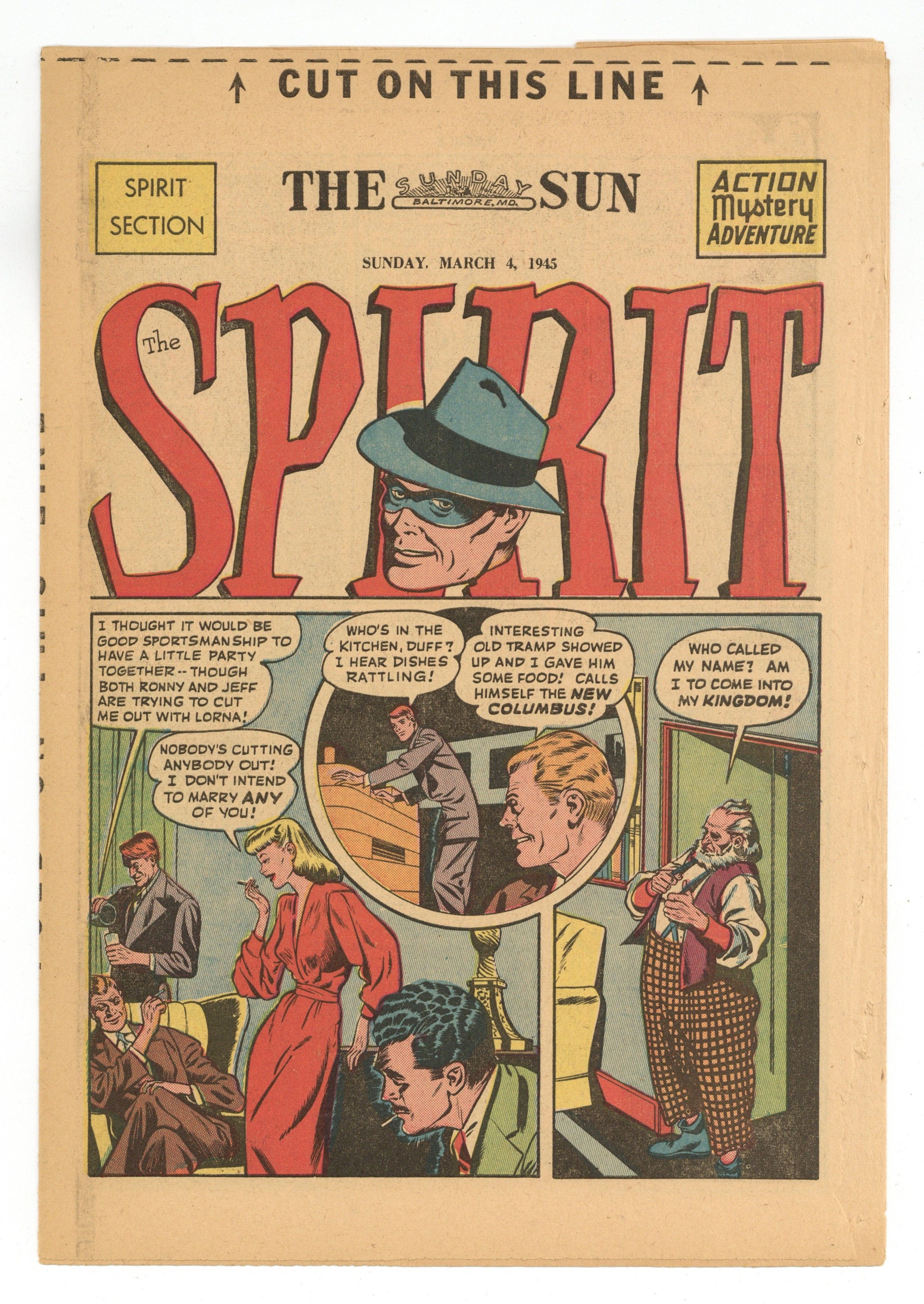Spirit Weekly Newspaper Comic Insert. 7-1/2 x 10 inches, 16 pages, full color, all newsprint with no slick cover. Wellman/Woolfolk scripts, Fine art with unknown staff assists.