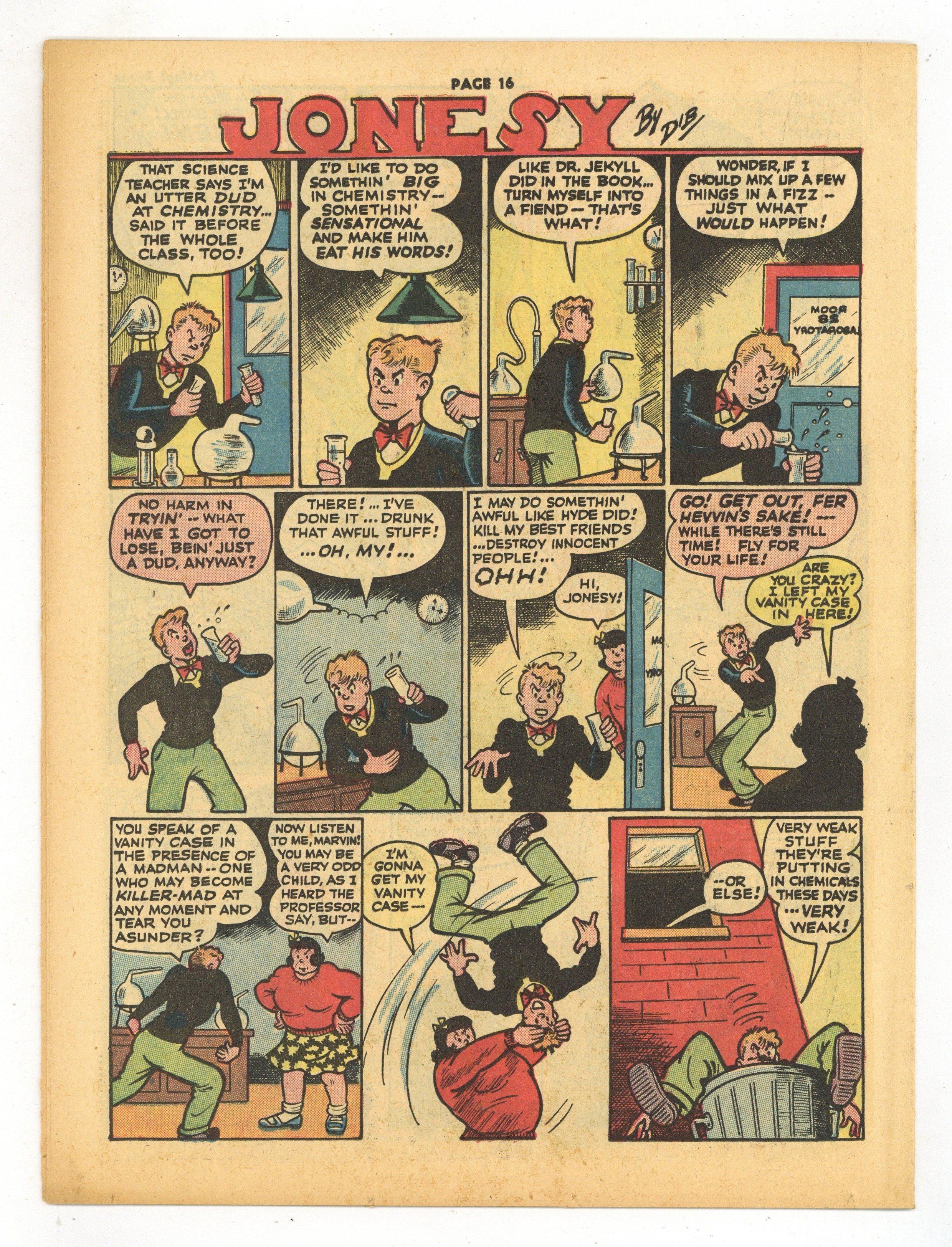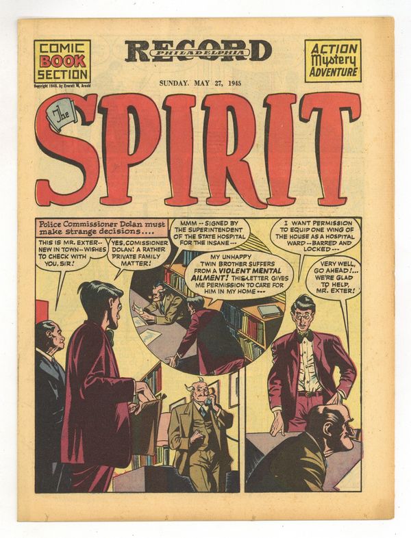 Published May 1945 by Promotional.$72.00Spirit Weekly Newspaper Comic Insert. 7-1/2 x 10 inches, 16 pages, full color, all newsprint with no slick cover. Wellman/Woolfolk scripts, Fine art with unknown staff assists.