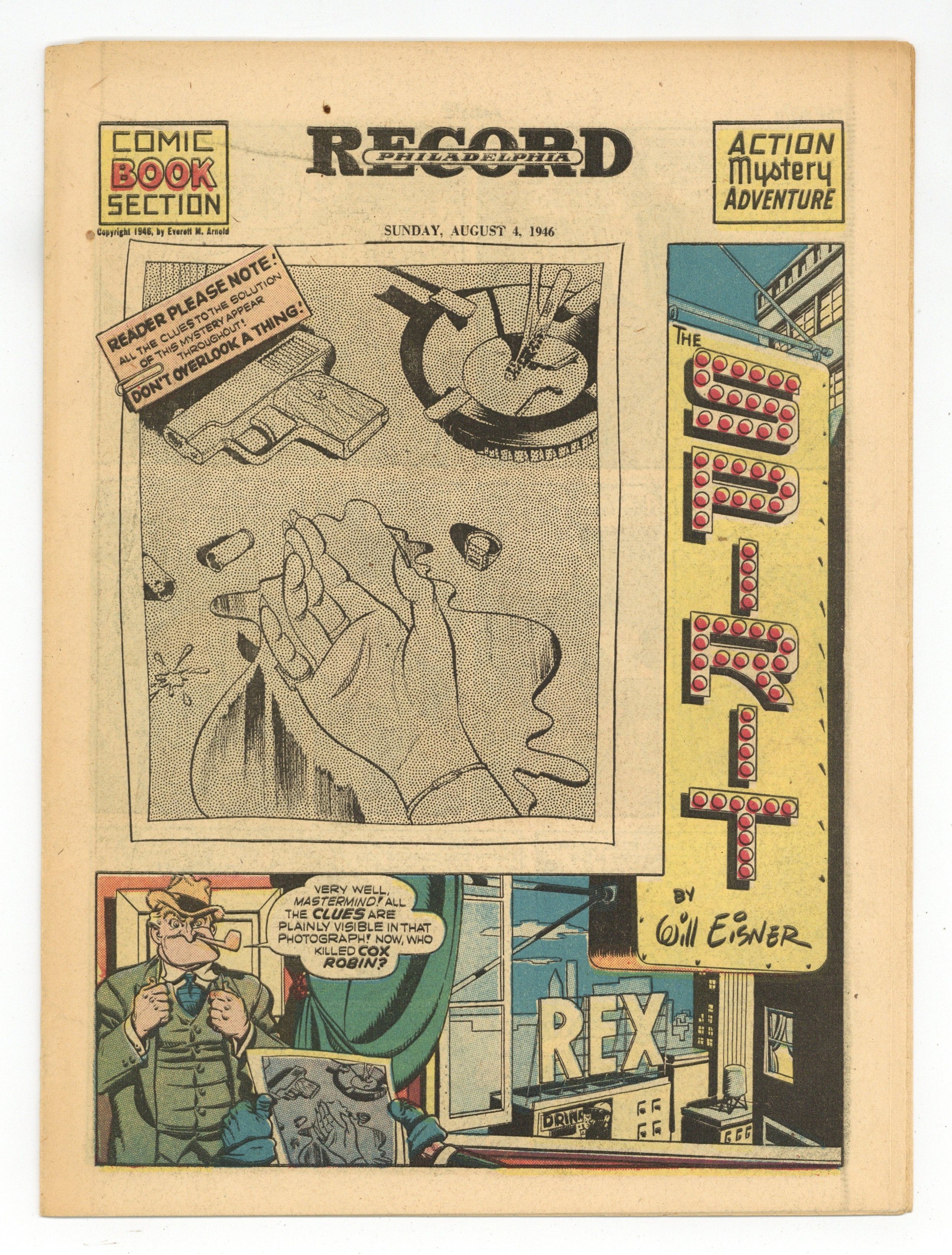 Published Aug 1946 by Promotional.$90.00Spirit Weekly Newspaper Comic Insert. 7-1/2 x 10 inches, 16 pages, full color, all newsprint with no slick cover. Scripts/layouts by Eisner, Eisner/Nordling, Eisner/Mercer, or Spranger/Eisner; inks by Eisner or Eisner/Spranger. Lady Luck by Fred Schwab.