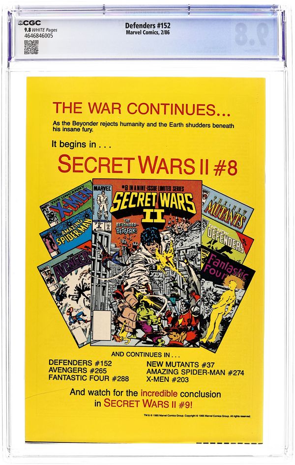 Final Issue - "The End of All Songs! Written by Peter B. Gillis. Art by Don Perlin and Dell Barras. Cover art by Frank Cirocco. Story Continued from Secret Wars II (1985) #7. Moondragon cures Angel's blindness, cures Chris Larmouth from the spoor monster, and cures Carol and Danny Faber; Includes Punisher ad with art by Mike Zeck and by John Beatty. 52 pages, FC. NOTE: Angel, Beast and Ice Man continue their adventures in the pages of X-Factor (1986 1st Series) #1. - Odinson, Lone Star Comics Archivist. Cover price $1.25.