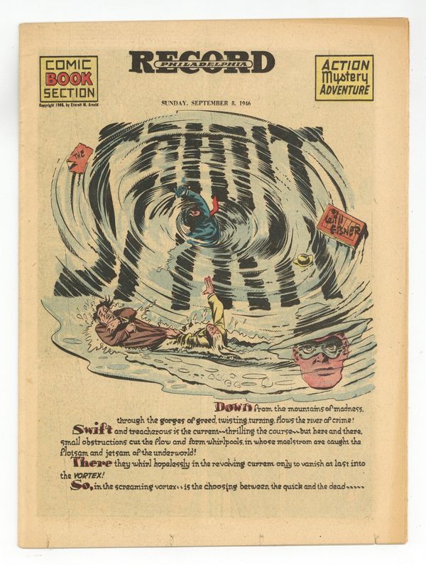 Published Sep 1946 by Promotional.$90.00Spirit Weekly Newspaper Comic Insert. 7-1/2 x 10 inches, 16 Pages, full color, all newsprint with no slick cover. Scripts/layouts by Eisner, Eisner/Nordling, Eisner/Mercer, or Spranger/Eisner; inks by Eisner or Eisner/Spranger. Lady Luck by Fred Schwab.