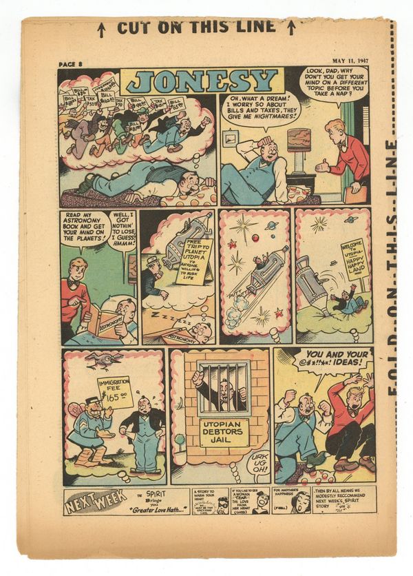 Published May 1947 by Promotional.$84.00Spirit Weekly Newspaper Comic Insert. 7-1/2 x 10 inches, 16 Pages, full color, all newsprint with no slick cover. Scripts, pencils/inks by Eisner except where noted.