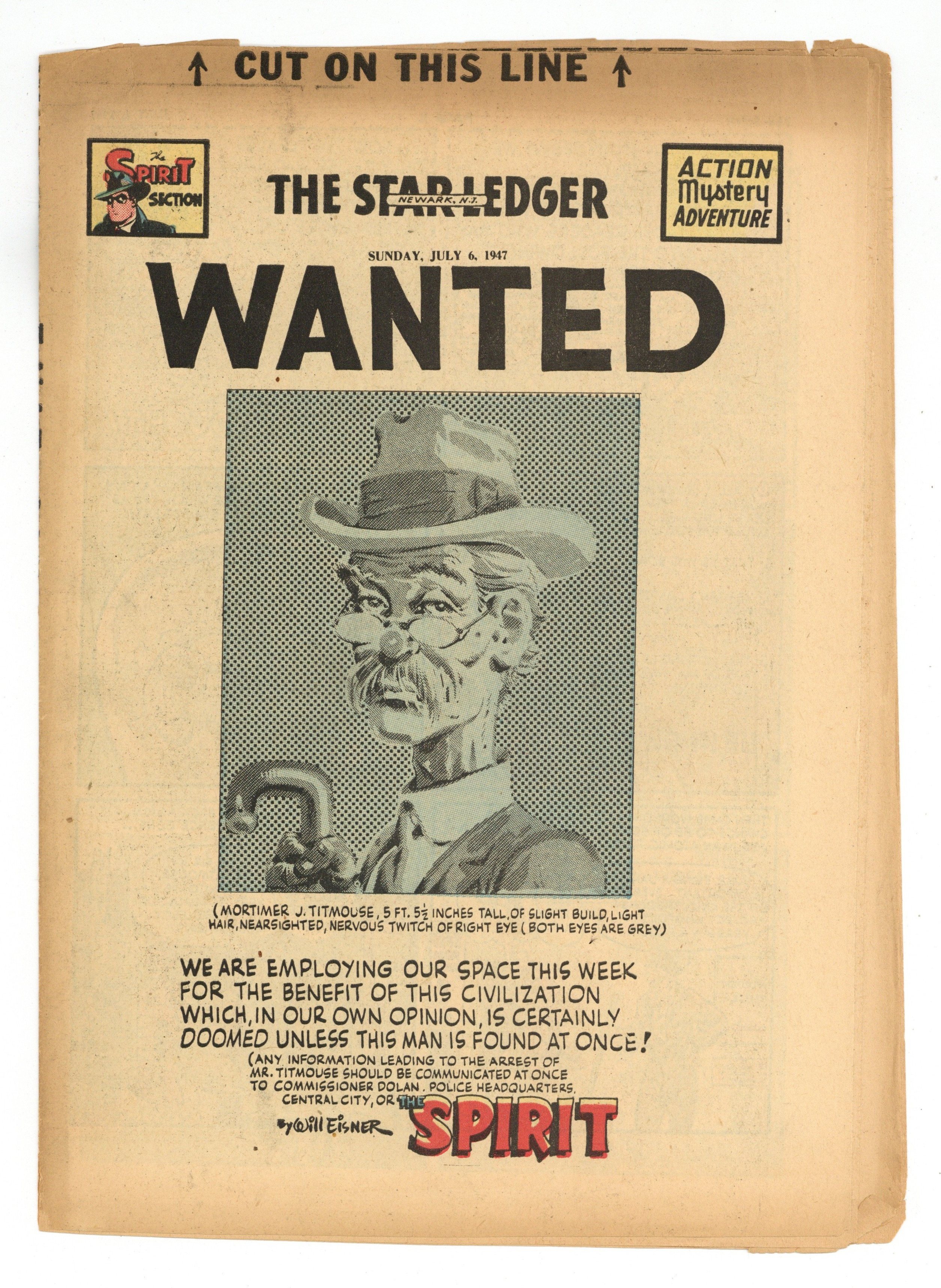 Spirit Weekly Newspaper Comic Insert. 7-1/2 x 10 inches, 16 Pages, full color, all newsprint with no slick cover. Scripts, pencils/inks by Eisner except where noted.