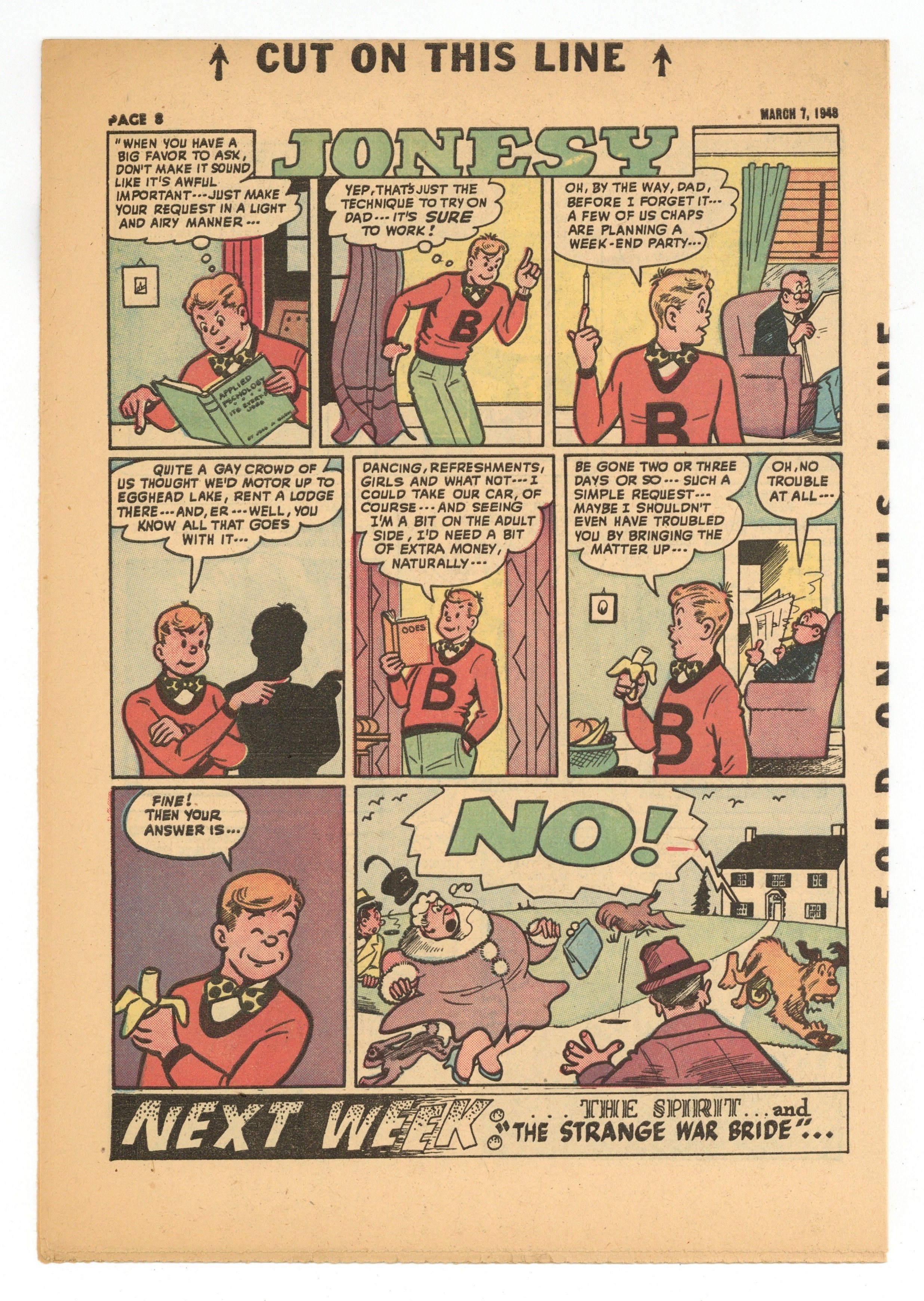 Published Mar 1948 by Promotional.$180.00Spirit Weekly Newspaper Comic Insert. 7-1/2 x 10 inches, 16 Pages, full color, all newsprint with no slick cover. Scripts, pencils/inks by Eisner except where noted.