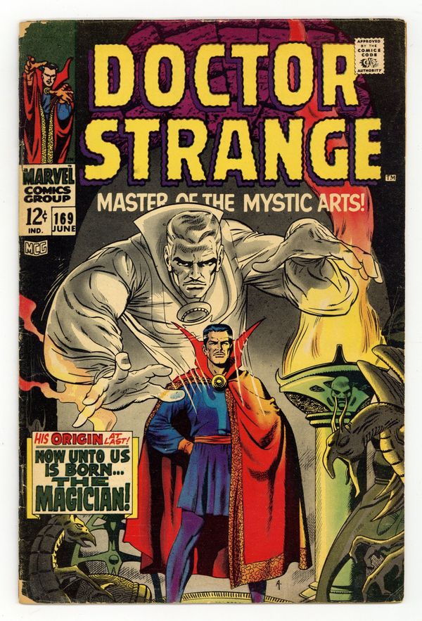 Tags: Marvel Legacy Numbering: Doctor Strange (part 169)$170.00Doctor Strange stories continued from Strange Tales. 1st Doctor Strange in his own title. Cover art by Dan Adkins. The Coming of... Dr. Strange, script by Roy Thomas, art by Dan Adkins; Origin of Dr. Strange retold; Stephen Strange seeks out the Ancient One in Himalayas in hope of a cure for his damaged nerves; He discovers that Baron Mordo, a pupil of the Ancient One, is plotting to kill his teacher; Strange warns the Ancient One and then asks to study the mystic arts. House ad for Amazing Spider-Man #61 and Thor #152. Letter to the editor from comics historian George Olshevski. 36 pgs. $0.12. Cover price $0.12.