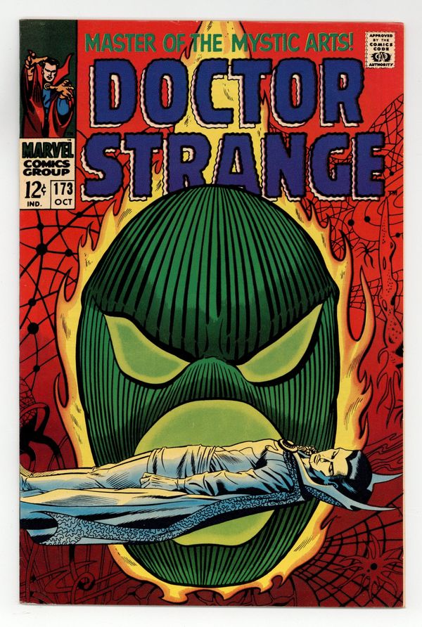 Tags: Marvel Legacy Numbering: Doctor Strange (part 173)$27.00Cover art by Dan Adkins. While a World Waits!, script by Roy Thomas, pencils by Gene Colan, inks by Tom Palmer; Umar frees Strange, via suggestion from Clea and Victoria Bentley; Dormammu defeated by his own vow never to enter the Earth dimension; curse returns him to the Dark Dimension; Dr. Benton, former medical colleague, offers consultant position to Strange. Cover price $0.12.