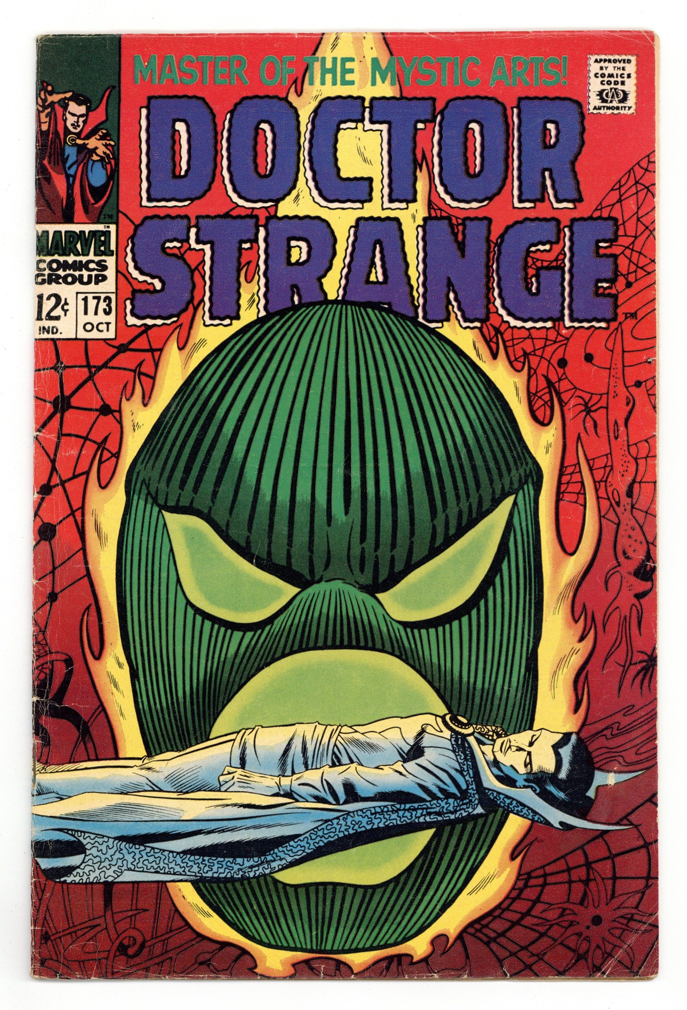 Tags: Marvel Legacy Numbering: Doctor Strange (part 173)$24.00Cover art by Dan Adkins. While a World Waits!, script by Roy Thomas, pencils by Gene Colan, inks by Tom Palmer; Umar frees Strange, via suggestion from Clea and Victoria Bentley; Dormammu defeated by his own vow never to enter the Earth dimension; curse returns him to the Dark Dimension; Dr. Benton, former medical colleague, offers consultant position to Strange. Cover price $0.12.