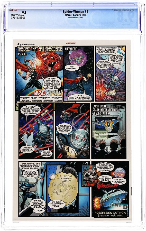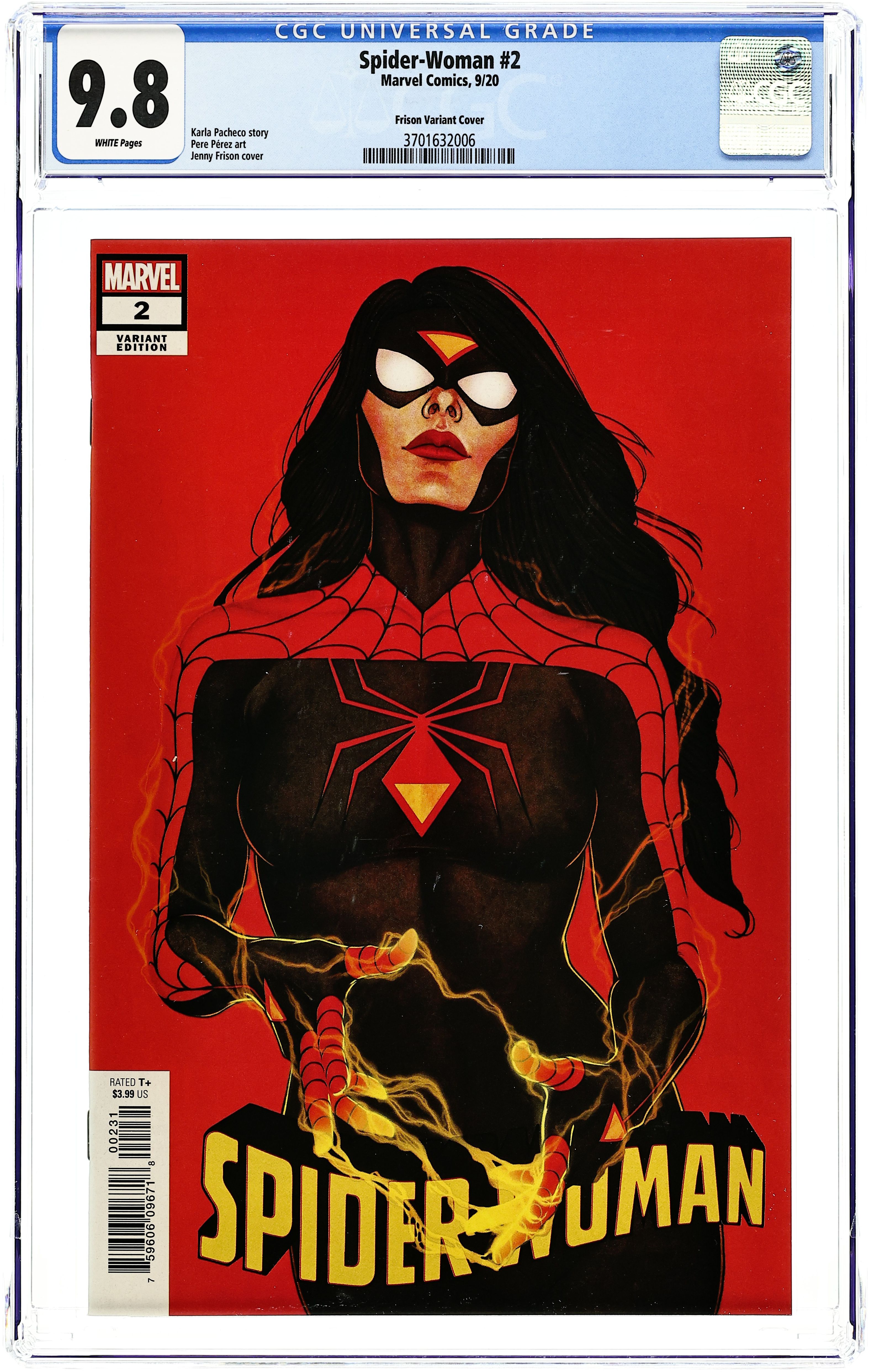Limited 1 for 50 Retailer Incentive Variant Cover. Written by Karla Pacheco. Art by Pere Perez. Cover by Jenny Frison. DOWN WITH THE SICKNESS! Spider-Woman discovers the origin of her illness. Spoilers: It wasn't bad sushi or that cold everyone at the office has. What does Jessica's illness have to do with the daughter of her old nemesis Otto Vermis? And how does a shipment of black-market spiders fit in? Jessica Drew is fighting for her life while someone is pulling the strings of her web…BUT WHO? 28 pages, full color. Rated T+ Cover price $3.99.