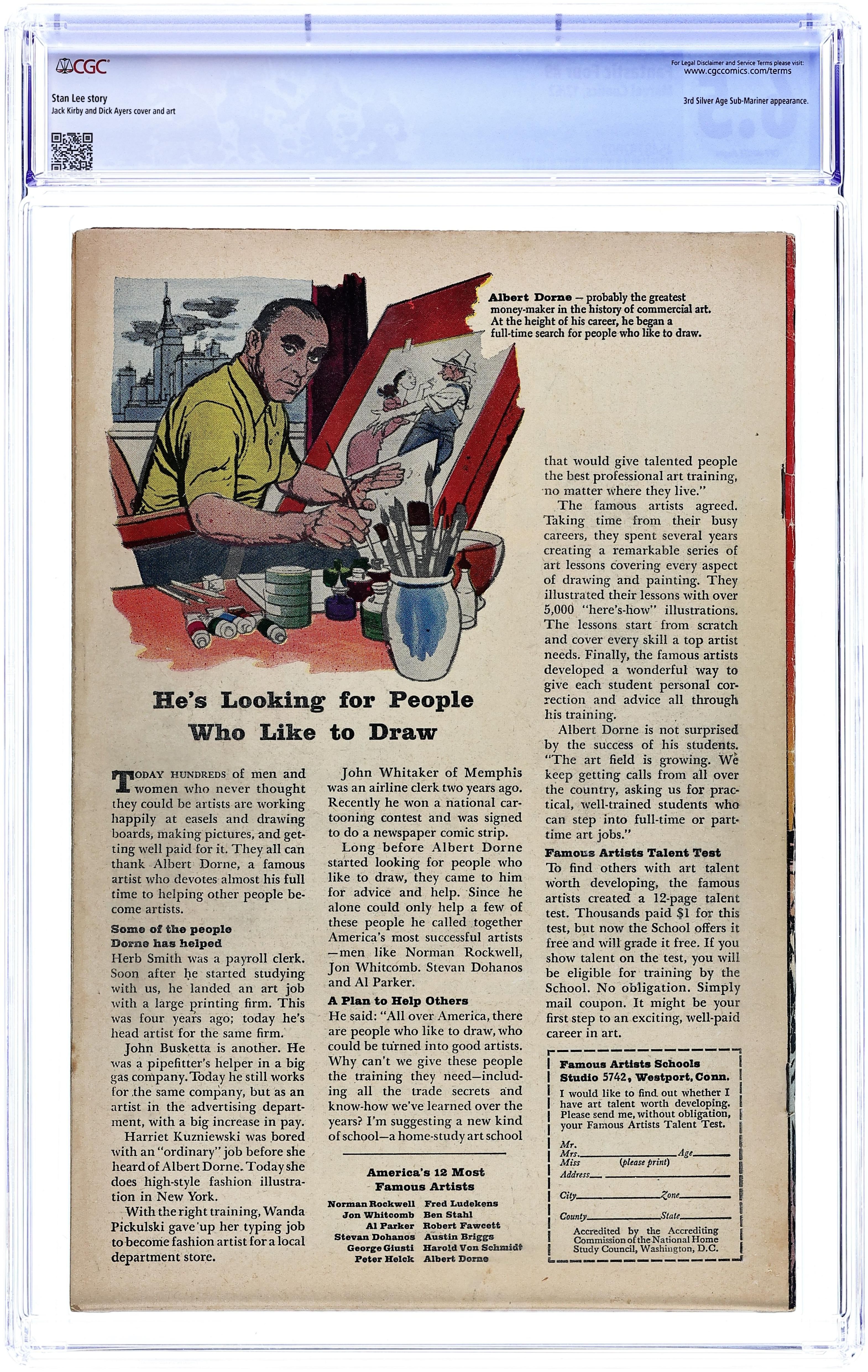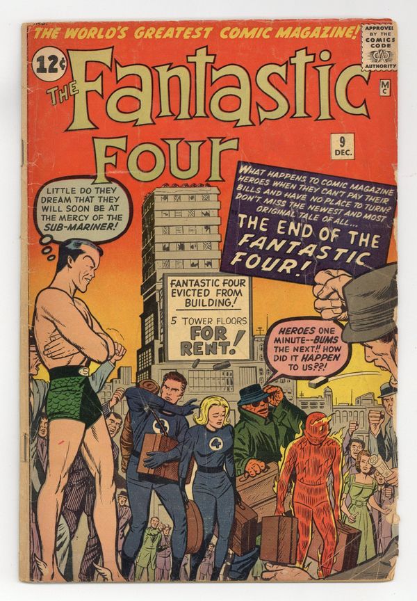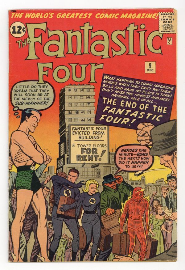 Starts Jan 3 Cover pencils by Jack Kirby, inks by Dick Ayers. Third Silver Age appearance of the Sub-Mariner in "The End of the Fantastic Four!", script by Stan Lee, pencils by Jack Kirby, inks by Dick Ayers; The Fantastic Four are bankrupt and the Sub-Mariner is scheming to use this. How the Human Torch Flies! character profile. Part 2 Sub-Mariner Gives the Orders!; The Sub-Mariner offers the Fantastic Four one million dollars if they star in a film that he's producing. Part 3 "The Fury of Mr. Fantastic"; Mr. Fantastic discovers that the film project is a setup. Part 4 "The Flame of Battle"; Human Torch and Thing discover that the film project is a setup. Vengeance Is Ours! Part 5; The film is produced and an unwilling Sub-Mariner pays the Fantastic Four their money. Letter to the editor from MyComicShop president Buddy Saunders! 36 pages, full color. Cover price $0.12.