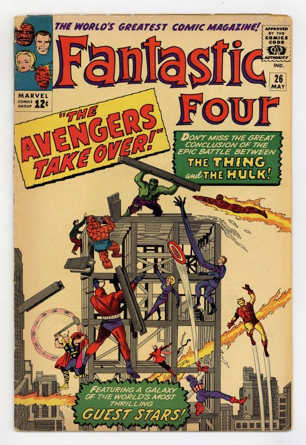 Cover pencils by Jack Kirby, inks by Sol Brodsky. The Avengers Take Over!, script by Stan Lee, pencils by Jack Kirby, inks by George Roussos [as George Bell]; The Avengers join the fight against Hulk. 36 pgs. $0.12. Cover price $0.12.