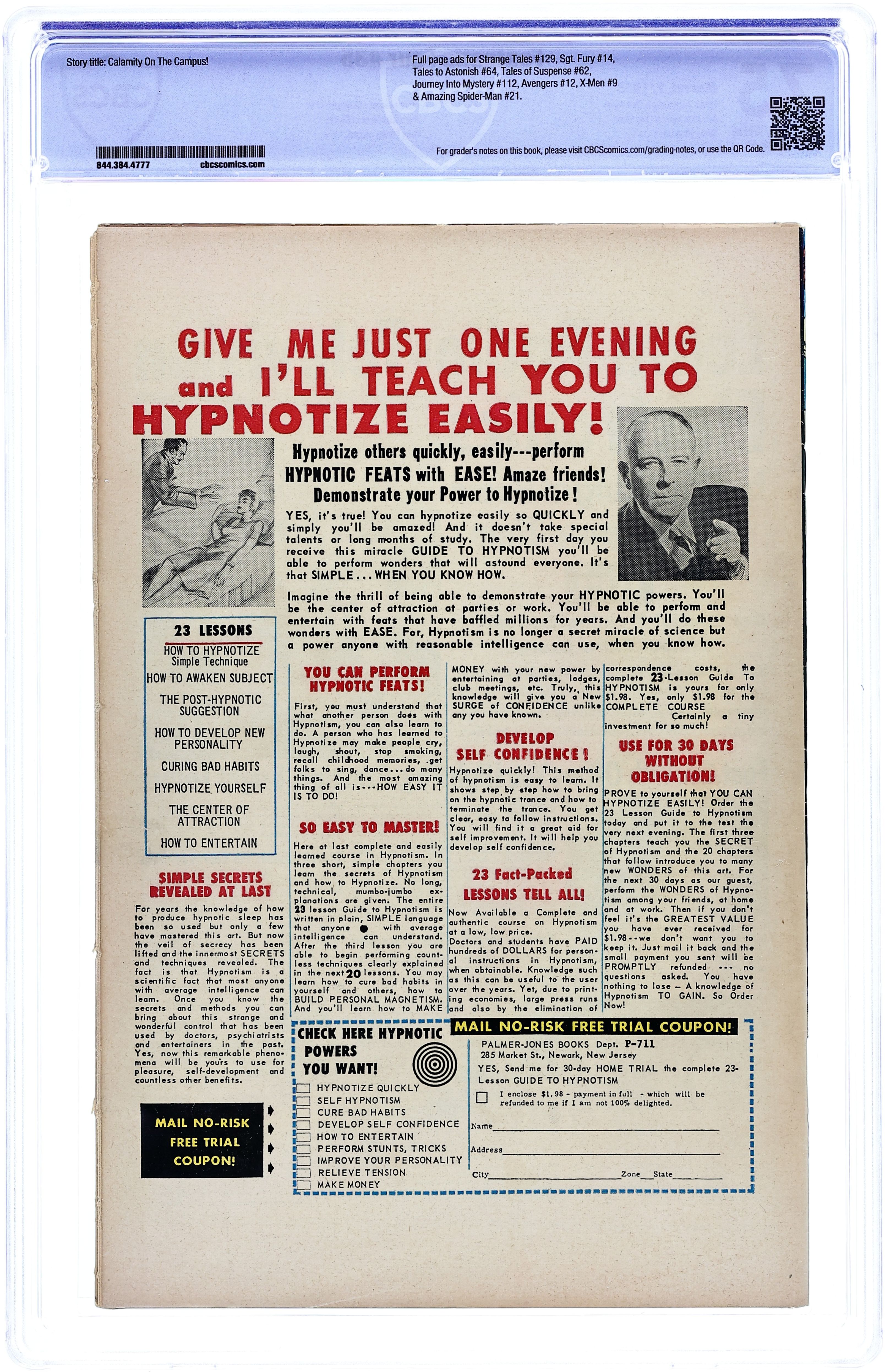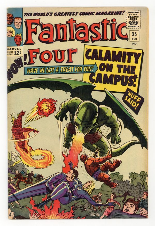 Cover pencils by Jack Kirby, inks by Dick Ayers. Calamity on the Campus!, script by Stan Lee, pencils by Jack Kirby, inks by Chic Stone; Diablo takes control of the Dragon Man android and wreaks havoc on the Empire State campus. 1st appearance Dragon Man 36 pgs. $0.12. Cover price $0.12.