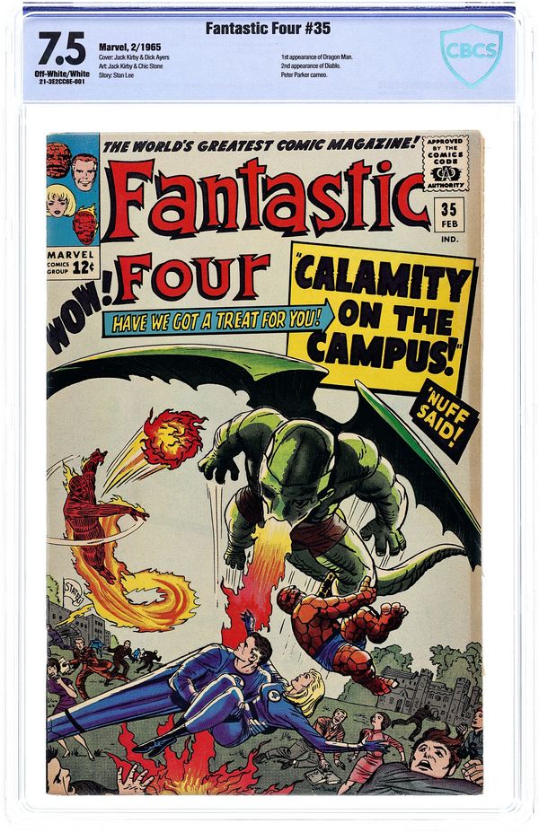 Ends Dec 8 8:16 PM CST Bid History 2 bids Current Bid $2 Your Secret Max Bid If you'd like to bid, please log in or register. Cover pencils by Jack Kirby, inks by Dick Ayers. Calamity on the Campus!, script by Stan Lee, pencils by Jack Kirby, inks by Chic Stone; Diablo takes control of the Dragon Man android and wreaks havoc on the Empire State campus. 1st appearance Dragon Man 36 pgs. $0.12. Cover price $0.12.