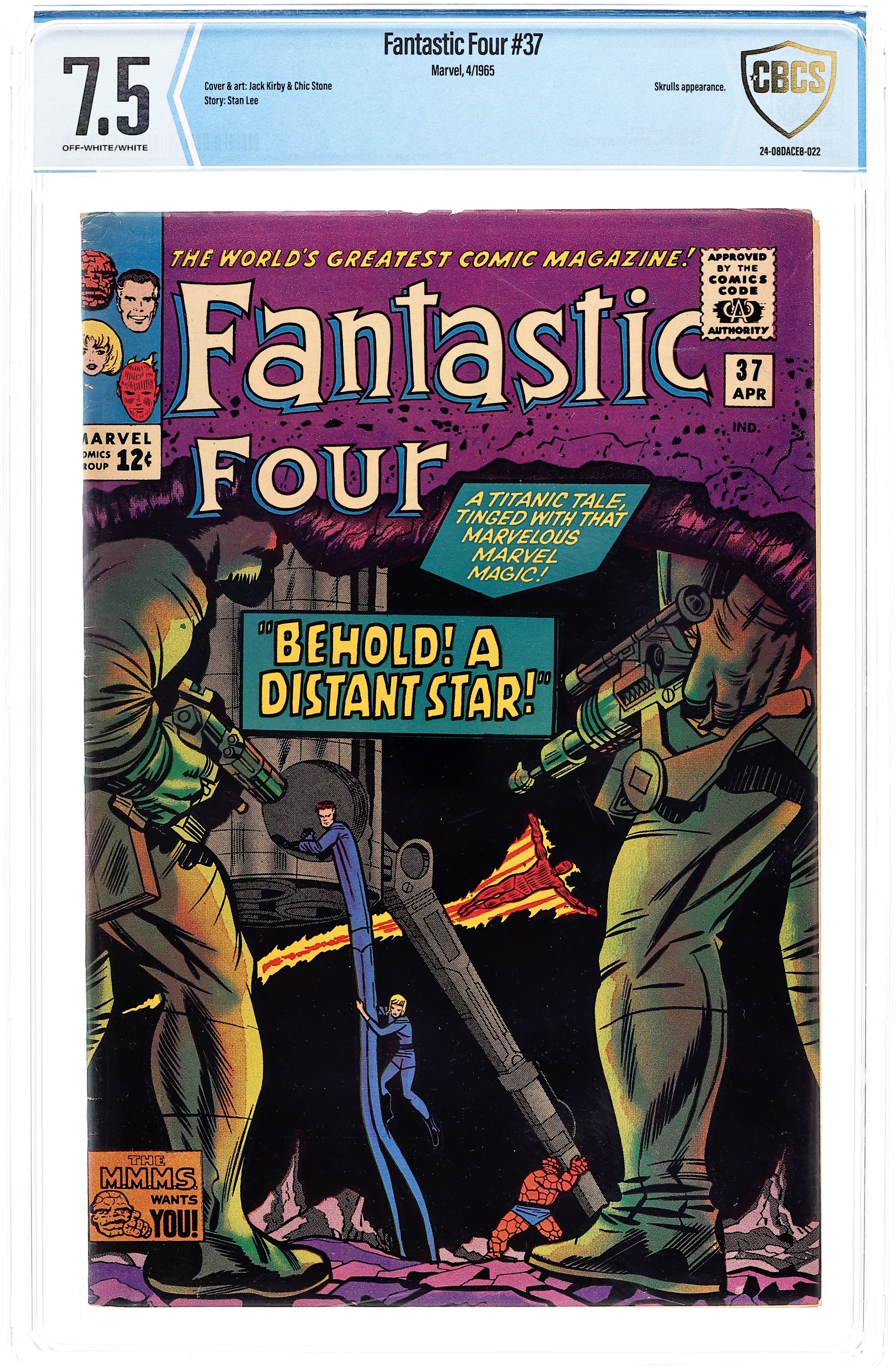 Ends Dec 8 8:16 PM CST Bid History 3 bids Current Bid $3 Your Secret Max Bid If you'd like to bid, please log in or register. Cover pencils by Jack Kirby, inks by Chic Stone. Behold! a Distant Star!, script by Stan Lee, pencils by Jack Kirby, inks by Chic Stone; The FF travel to the Skrull home world to avenge the death of Franklin Storm. 36 pgs. $0.12. Cover price $0.12.