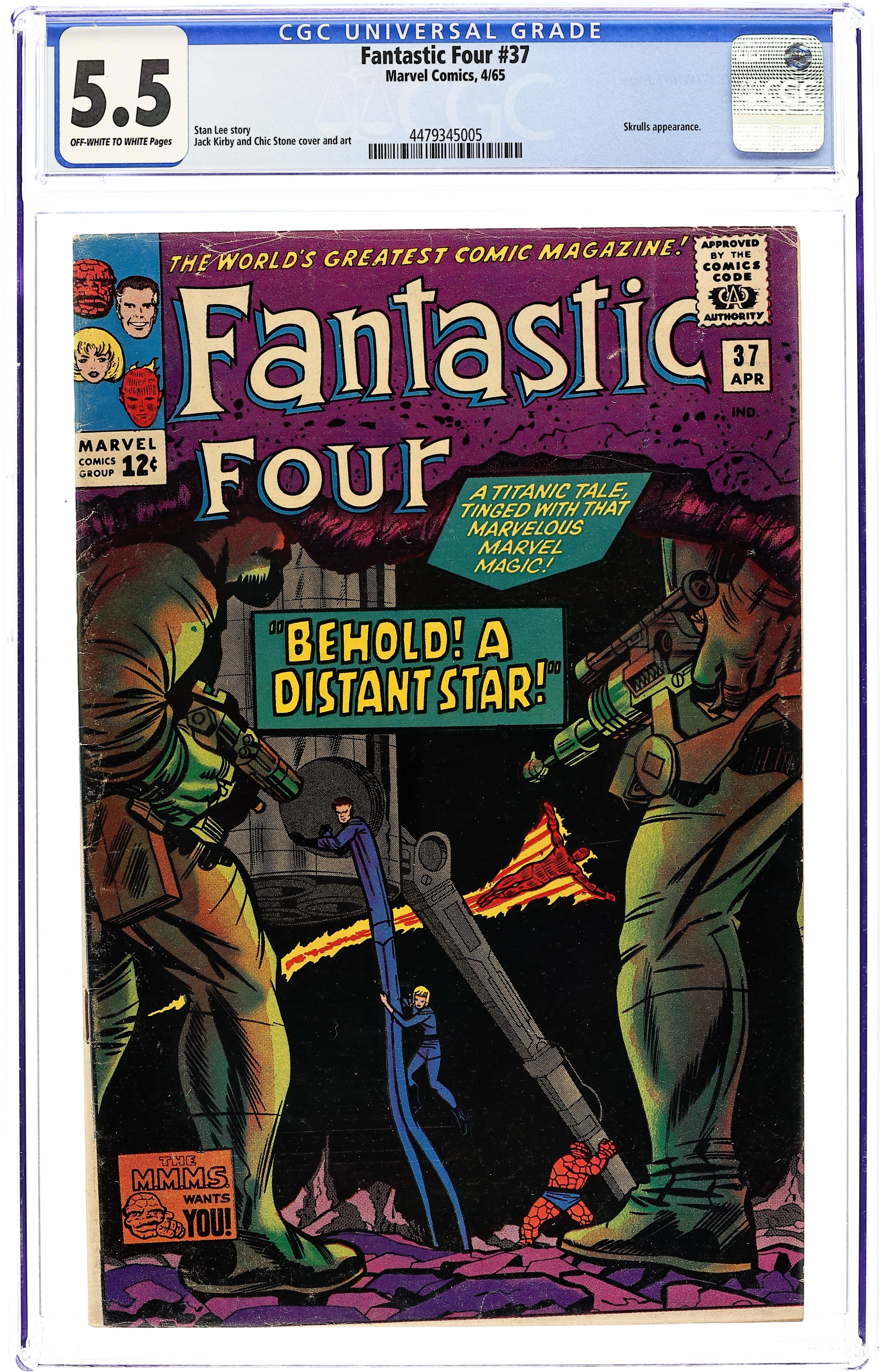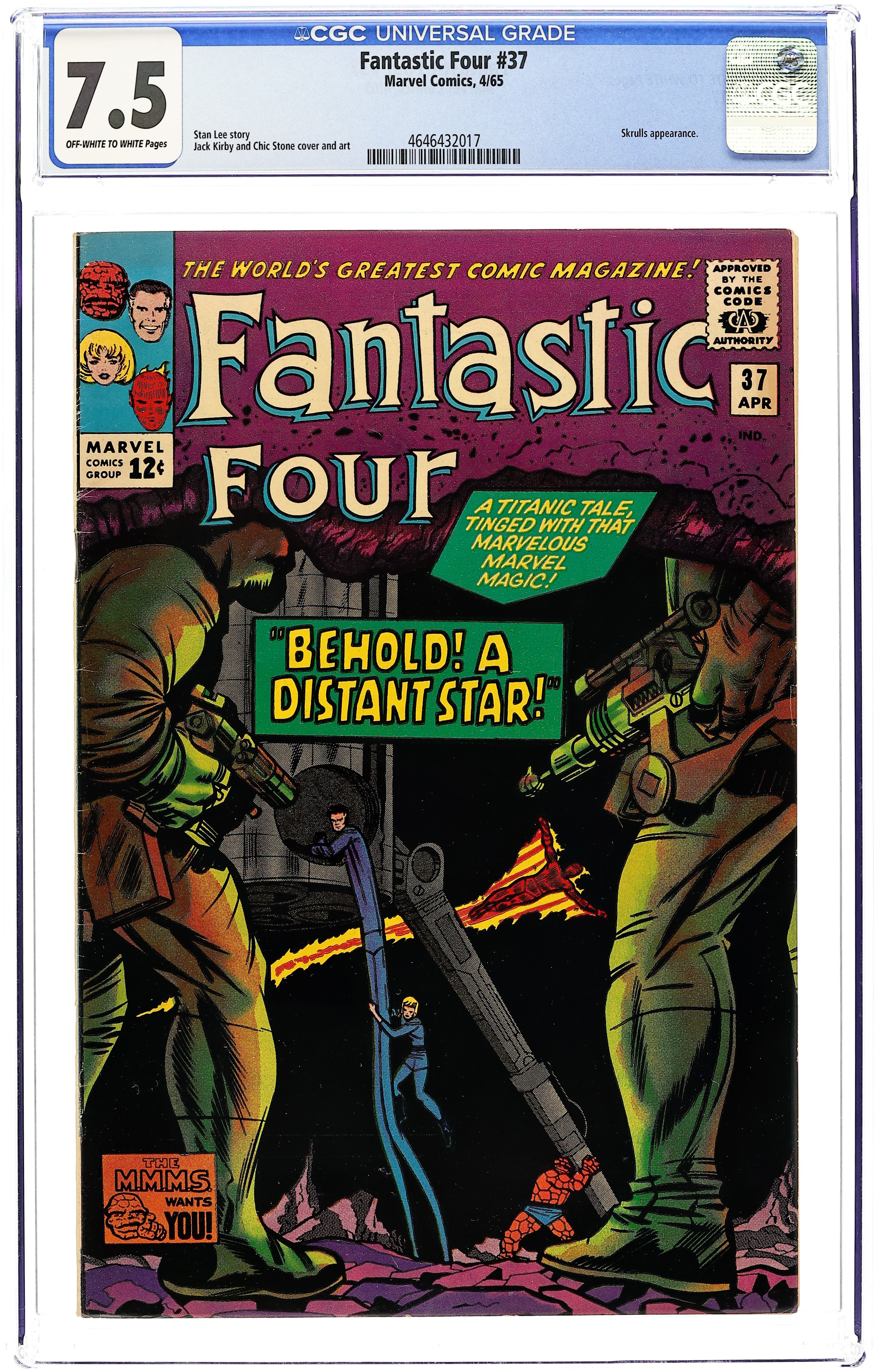 Cover pencils by Jack Kirby, inks by Chic Stone. Behold! a Distant Star!, script by Stan Lee, pencils by Jack Kirby, inks by Chic Stone; The FF travel to the Skrull home world to avenge the death of Franklin Storm. 36 pgs. $0.12. Cover price $0.12.
