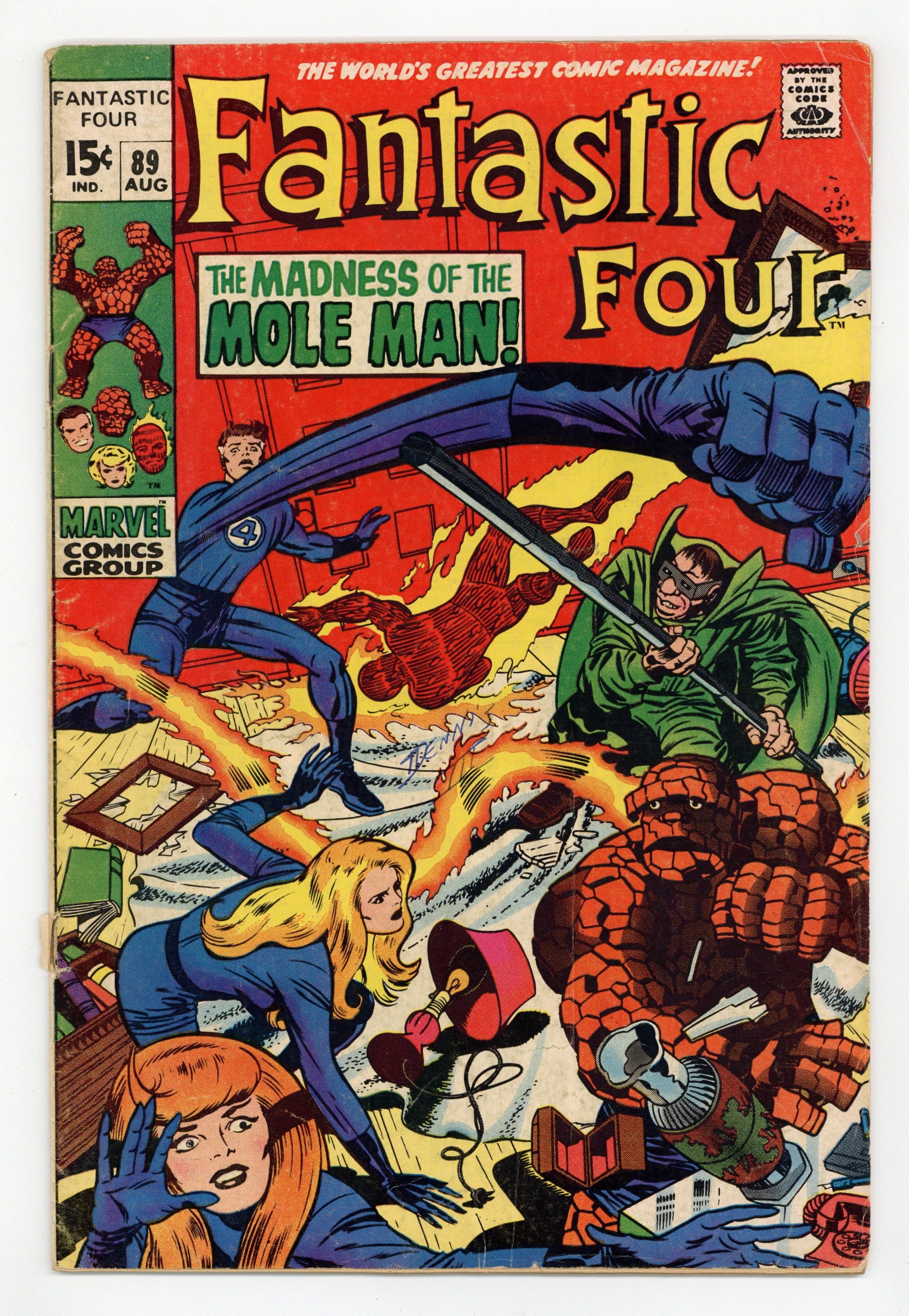 Tags: Fantastic Four$18.00"The Madness of the Mole Man!" Script by Stan Lee. Pencils by Jack Kirby. Inks by Joe Sinnott. Cover by Jack Kirby and Joe Sinnott. The Fantastic Four are blind! And in for the fight of their lives against the Mole Man! The subterranean super-villain corners the FF in his high-tech house and begins picking them off one by one! How can the heroes fight back without their sight? Simple…just listen with their ears! By focusing on the Mole Man's voice; Reed, Ben, and Sue lash out at their long-time foe! When the Invisible Girl breaks through and lands a shot, an opportunity arises for the Human Torch to end the battle! Can Johnny Storm turn up the heat on the Mole Man and bring down the house? Cameo appearance by the Slaver Skrull. First 15¢ issue. 33 pages Cover price $0.15.