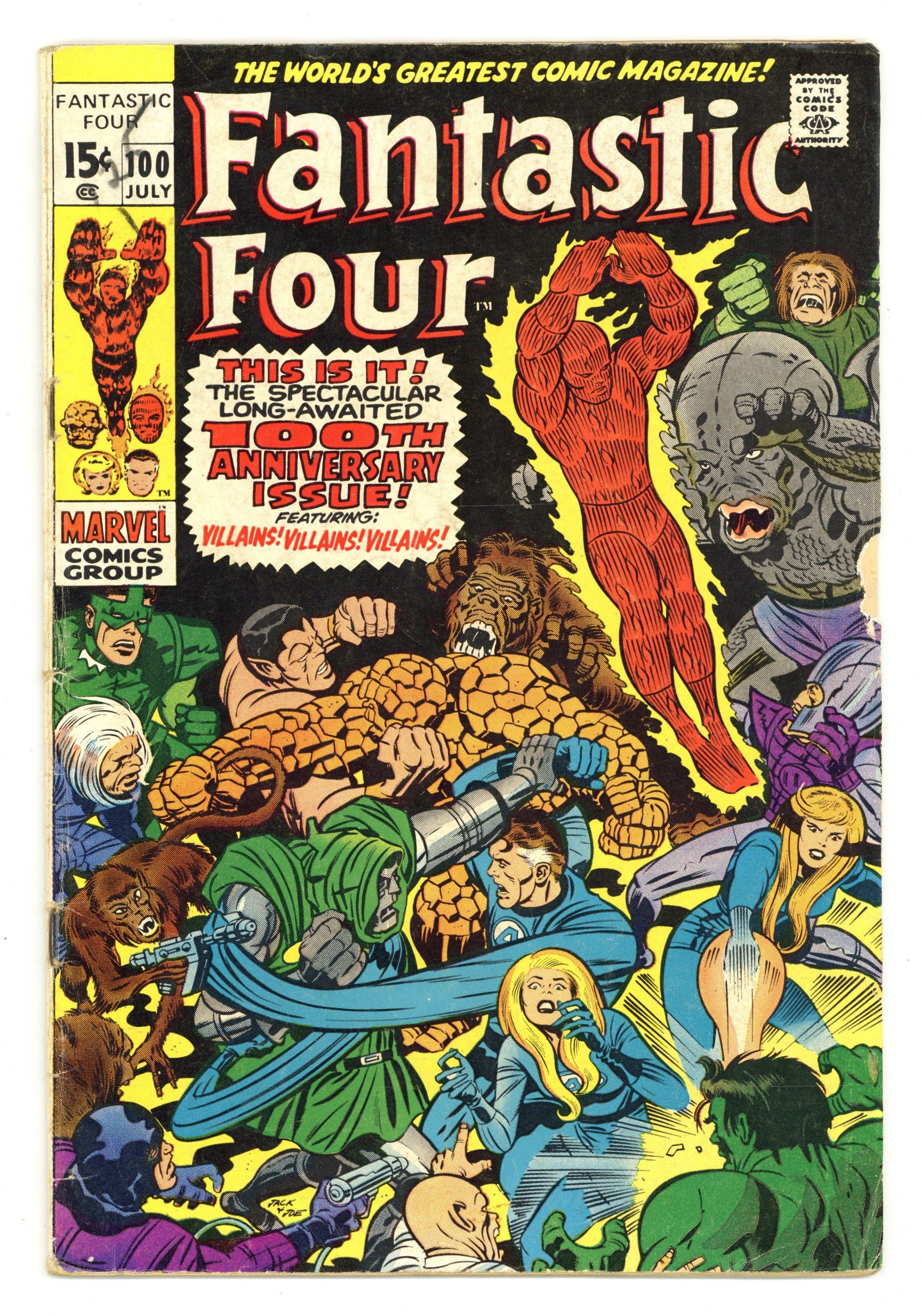Tags: Fantastic Four$14.50- 1.5" Spine split/tear from bottom. Four center wraps detached at one staple.