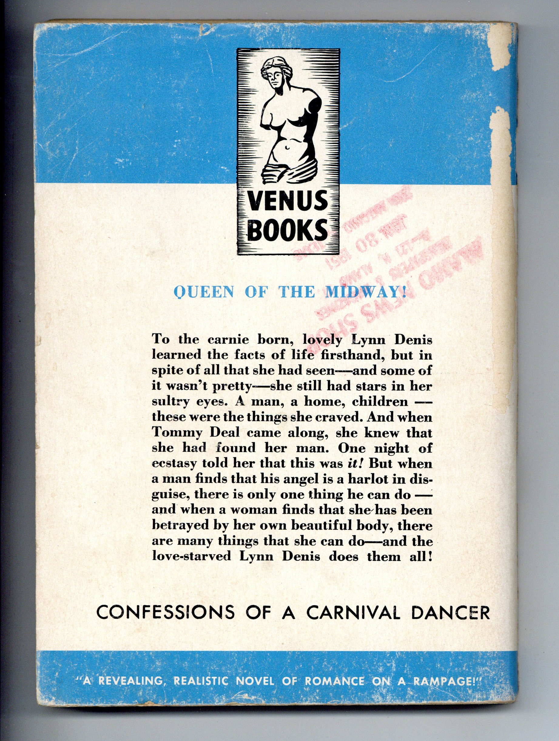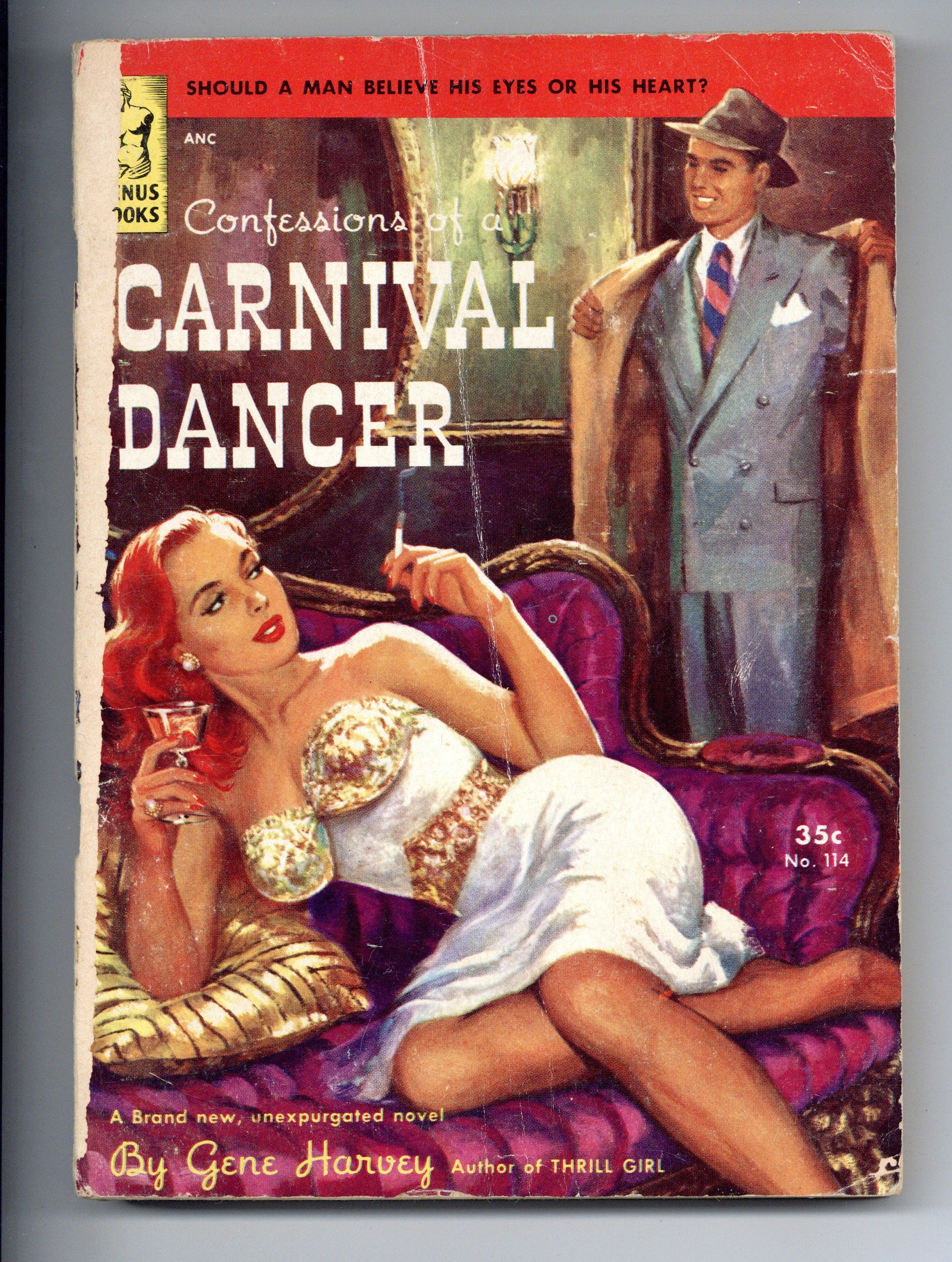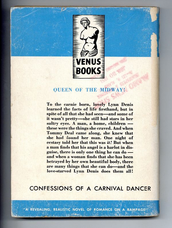 "Confessions of a Carnival Dancer" by Gene Harvey. Tommy Deal and Lynn Denis find the love of their lives in each other, that is until Lynn's past comes to light. 5.5" x 7.5", 130 pages, B&W. Cover price $0.35.